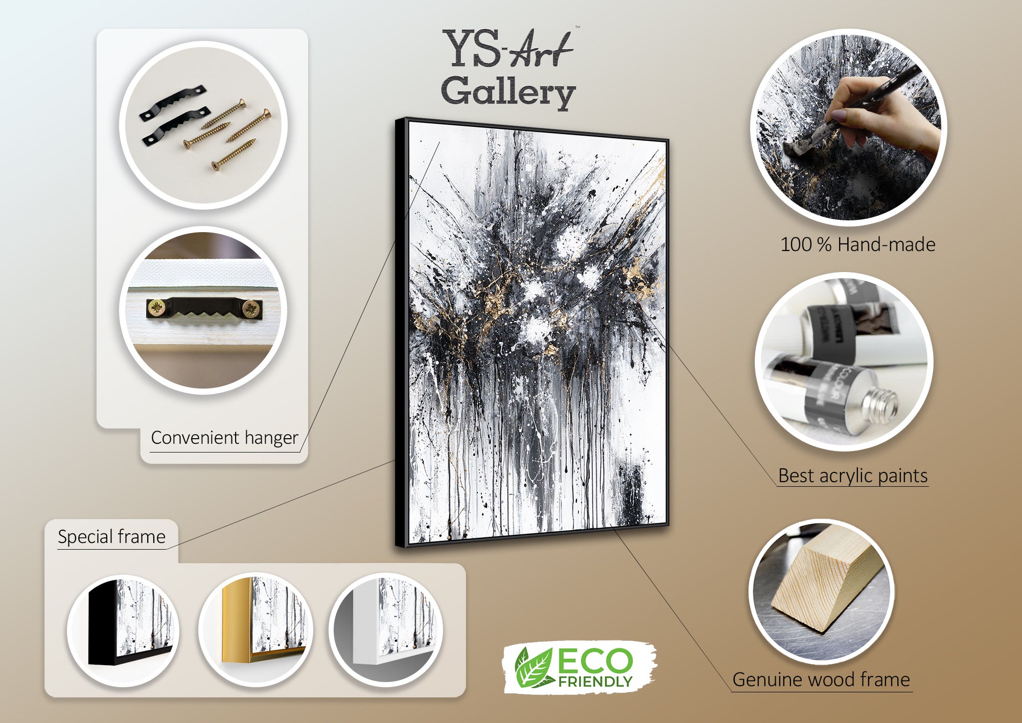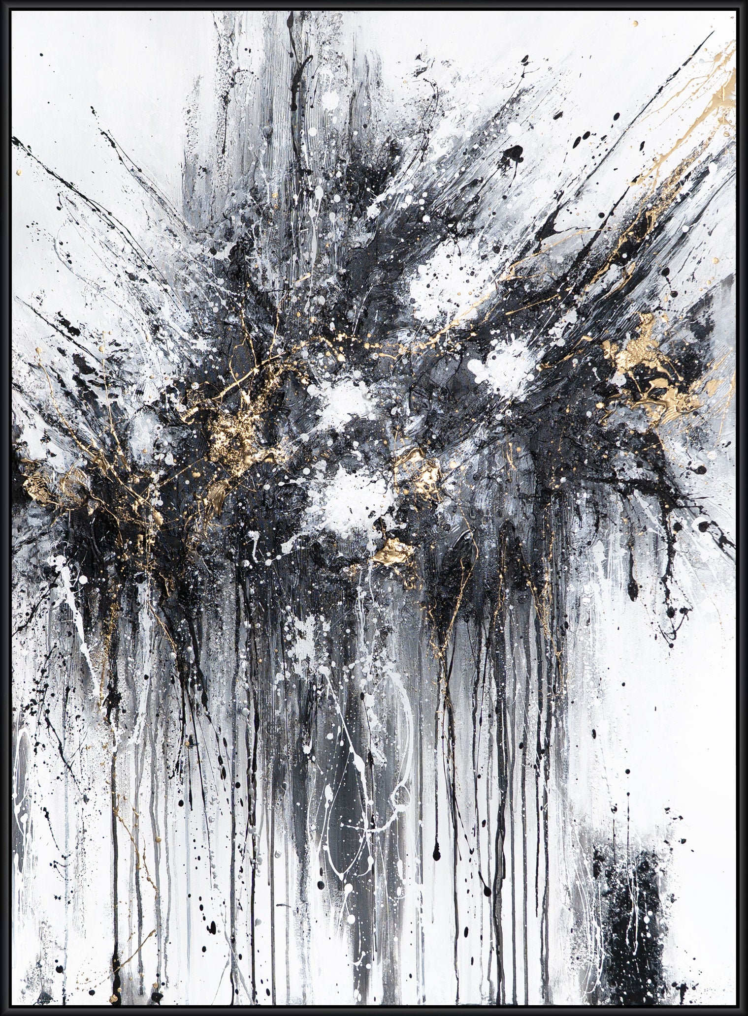 This hand-painted piece on high-quality canvas brings modern style and artistic expression into any room – whether it's the living room, bedroom, or office. The elegant gold frame makes the artwork ready to hang and perfectly completes the exclusive design.