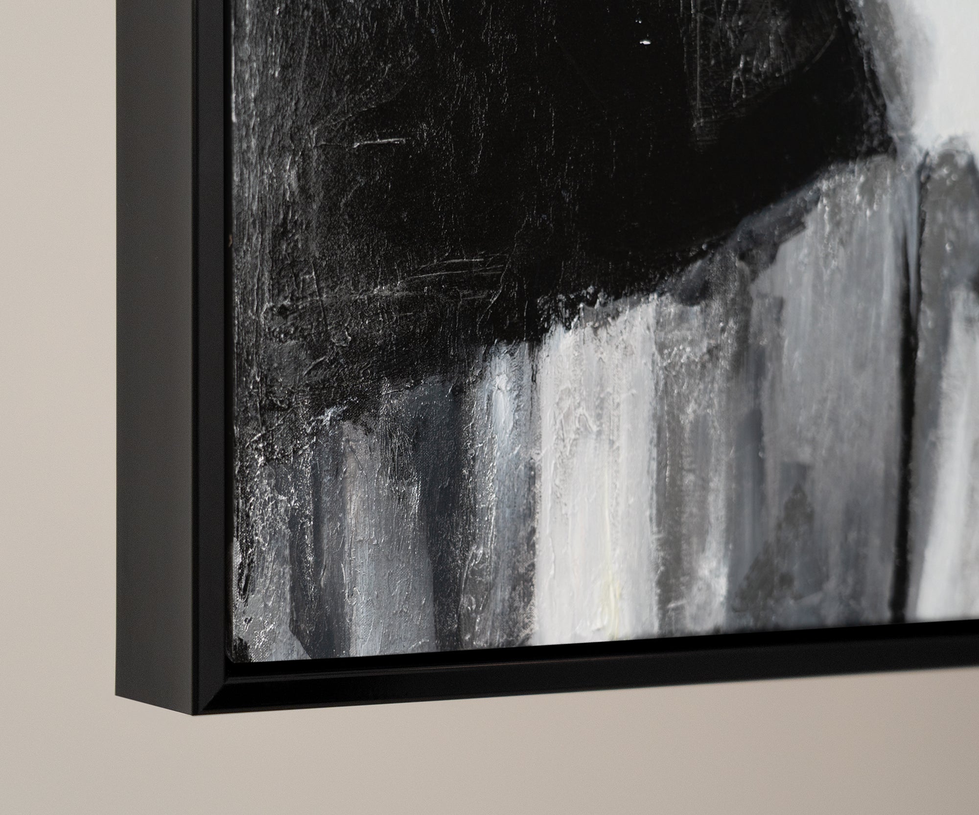 "Contrasting Reflections" Black White Art Hand-Painted Abstract Canvas Artwork with Frame