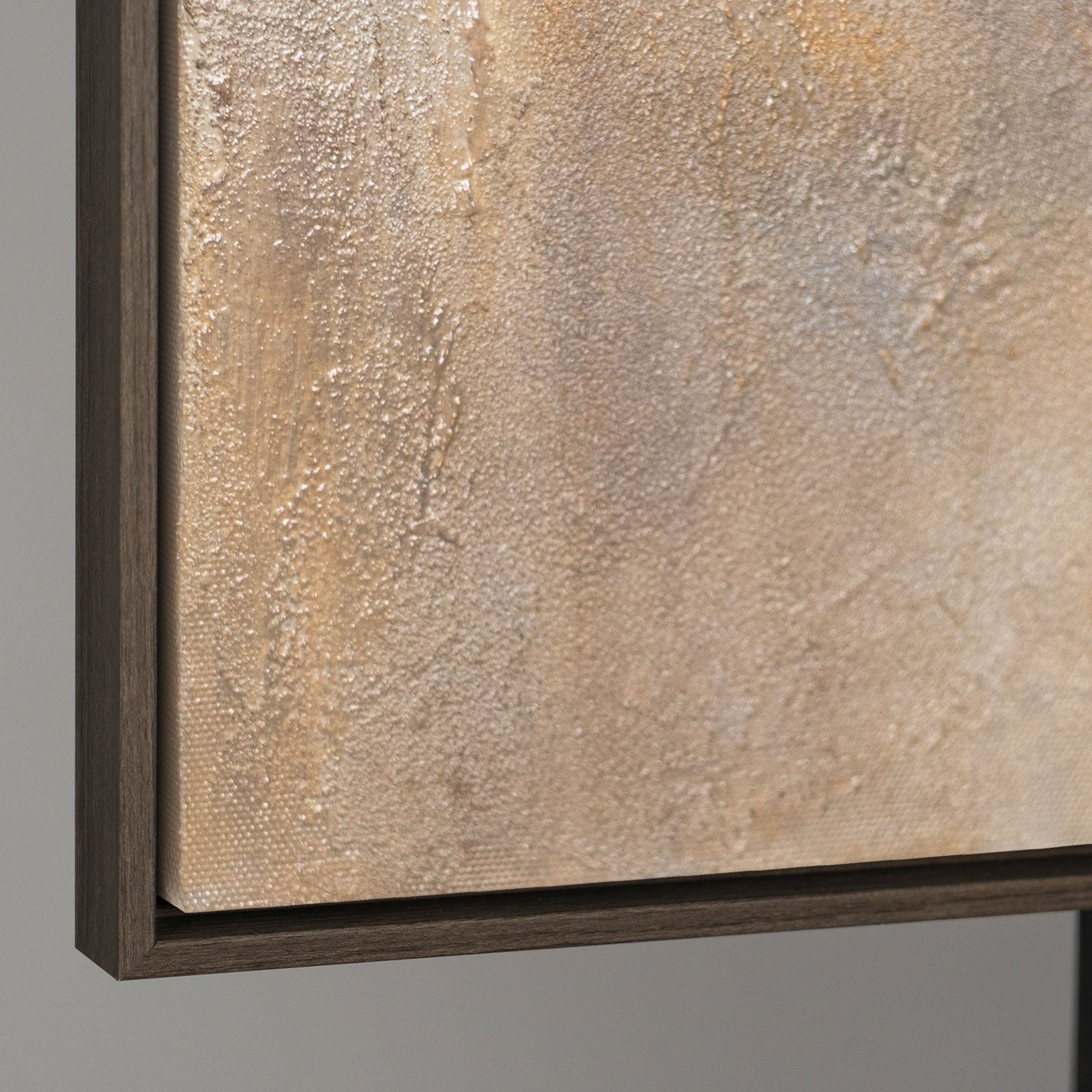 Leinwandbild mit Rahmen „Leuchten in den Wolken“ – Abstrakte Blumen in Goldtönen