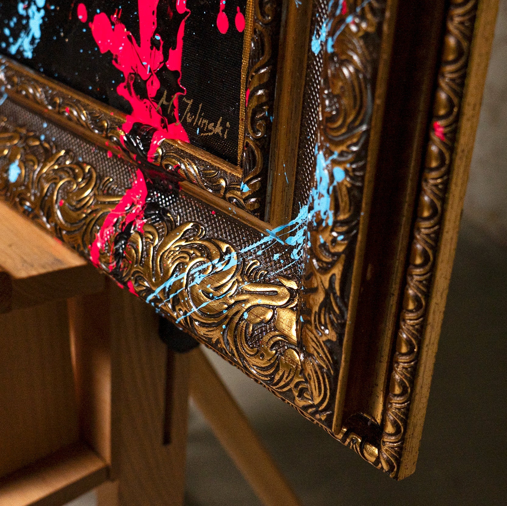 • Rahmenkante mit Farbe handgemalte Acrylkunst Nahansicht