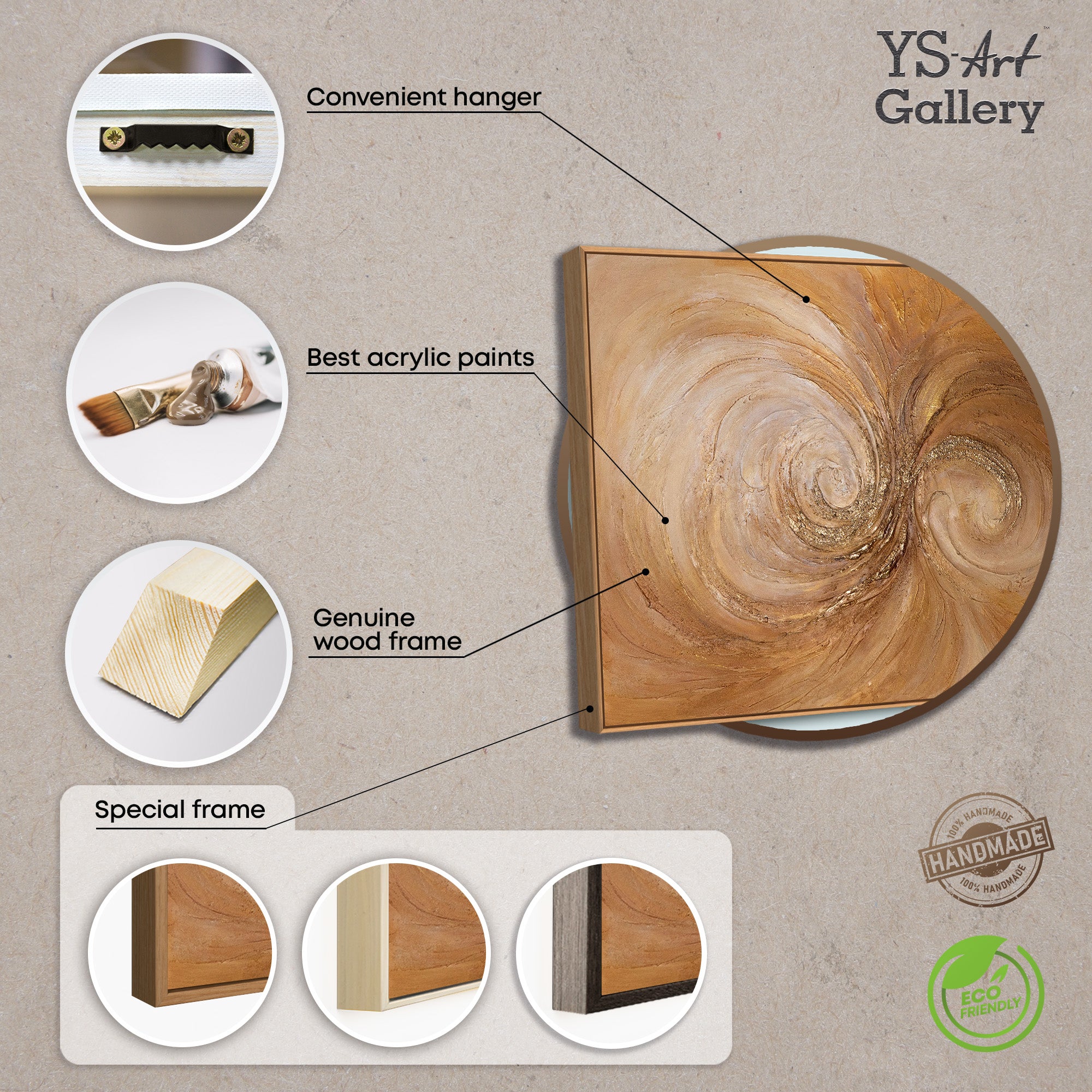 „Wirbelwind der Wärme“ ist ein ausdrucksstarkes abstraktes Acrylgemälde, das durch spiralförmige Bewegungen und harmonische Übergänge in warmen Beige-, Braun- und Goldtönen besticht. Die dynamische Komposition vermittelt Energie und Ruhe zugleich, während goldene Akzente Tiefe, Licht und eine edle Materialwirkung erzeugen. Die strukturierte Oberfläche unterstreicht den handgemalten Charakter und macht jedes Detail spürbar.