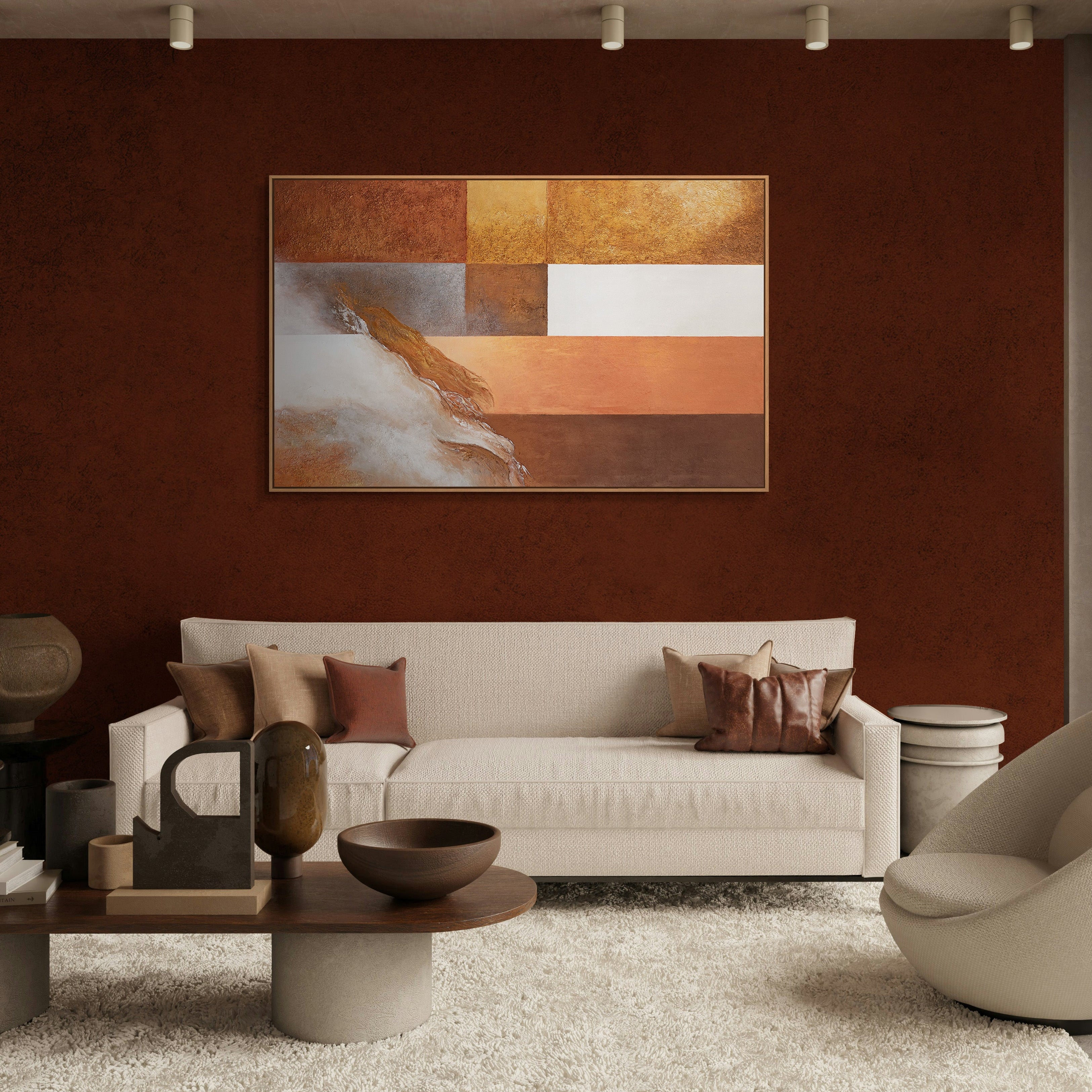Abstraktes Leinwandbild im Rahmen „Harmonie der Formen“ in warmen Tönen