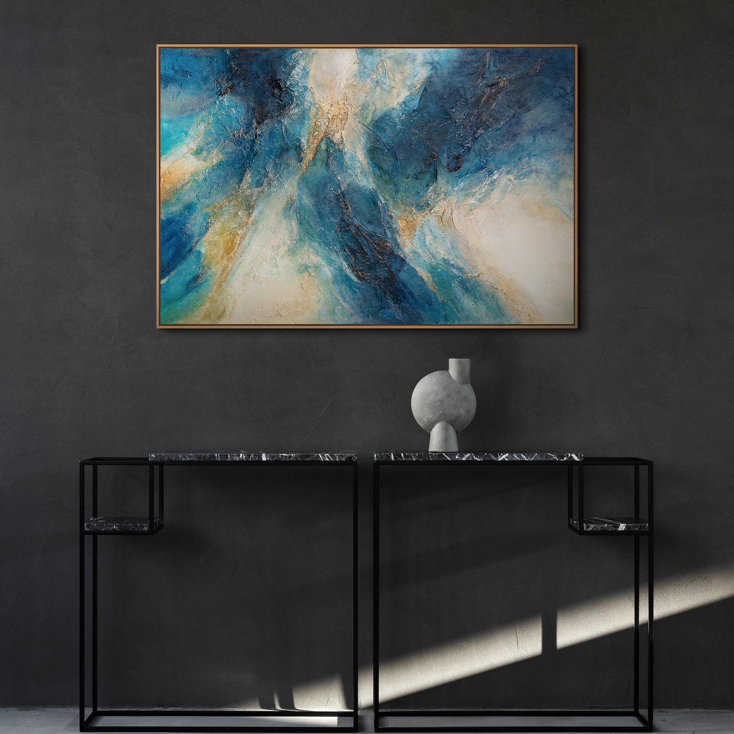 Dieses handgemalte Struktur Gemälde passt hervorragend in moderne, maritime und elegante Interieurs. Die dynamische Komposition setzt einen markanten Mittelpunkt in Wohnzimmern, Arbeitsräumen oder großen Fluren. Dank der hochwertigen Ausführung, der starken Textur und der brillanten Farbtiefe entsteht ein Kunstwerk, das Räume sichtbar aufwertet und ein Gefühl von Weite und Ruhe hineinträgt.