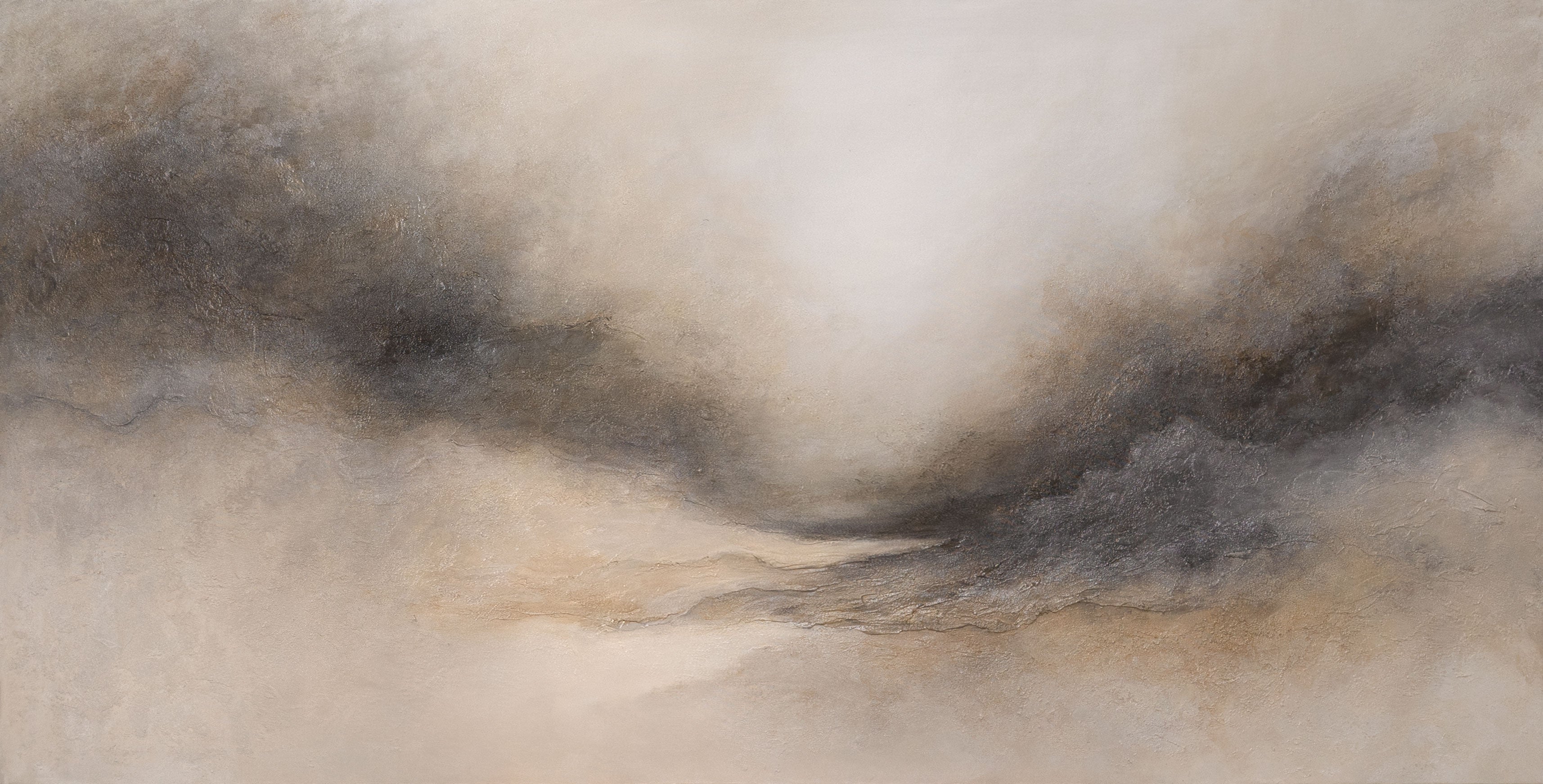 Abstract Acrylic Painting "Foggy Morning" – Elegant Canvas Art in Beige & Gray
