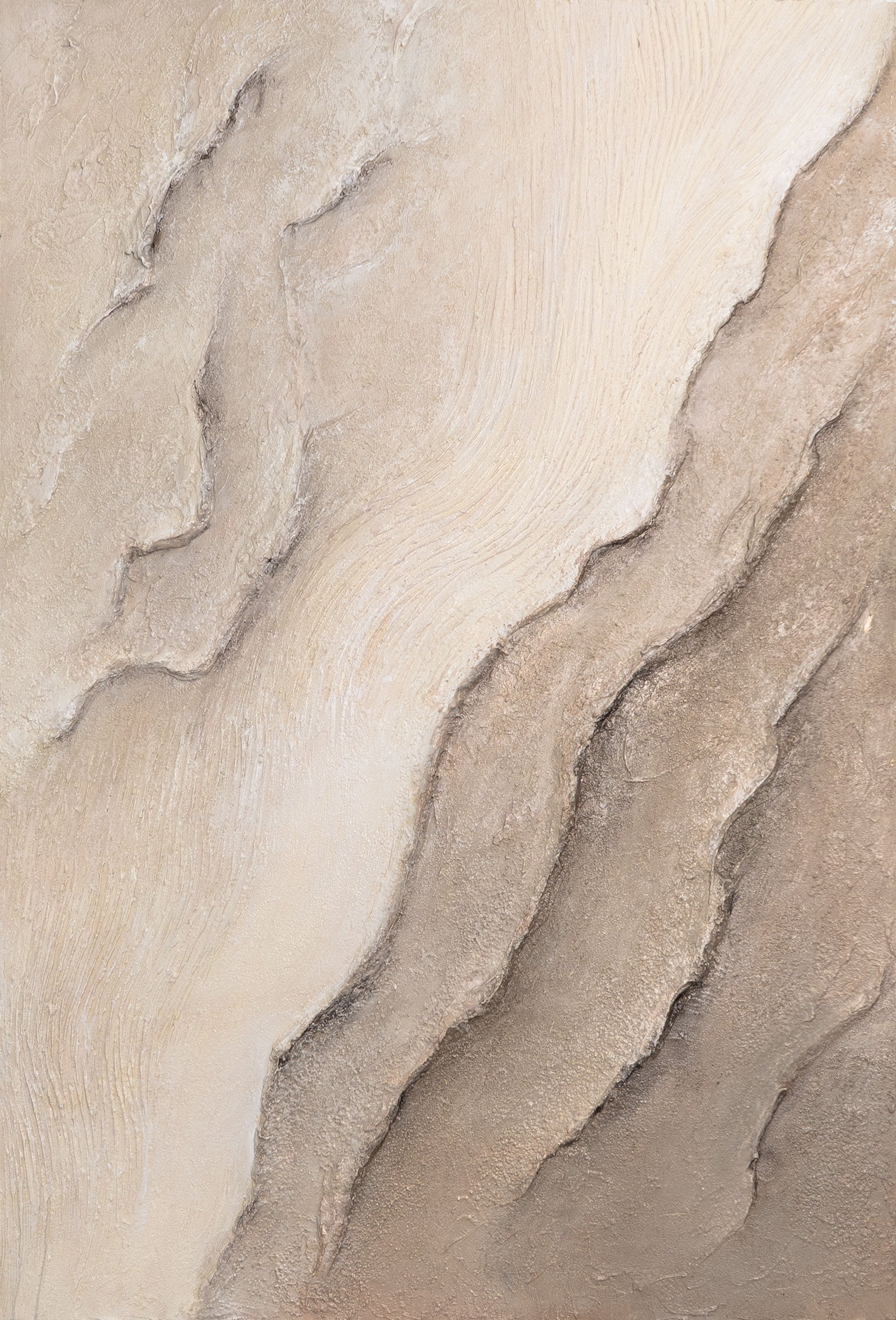 „Spuren der Zeit“ ist ein handgemaltes Acrylgemälde, das durch seine weichen Linien und harmonischen Strukturen besticht. Die Farbpalette aus Beige-, Sand- und Naturtönen vermittelt Ruhe und Zeitlosigkeit, während die reliefartige Oberfläche Tiefe und Natürlichkeit hervorhebt. Jede feine Linie erinnert an geologische Schichten und schafft eine organische, fast meditative Wirkung.