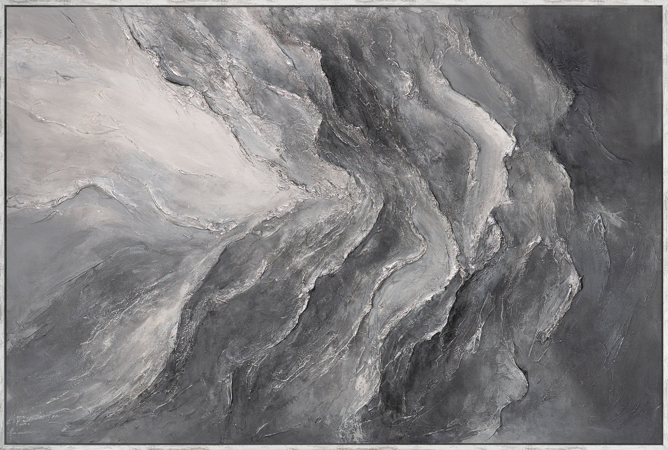 "Memory of the Rocks" is an expressive abstract acrylic painting reminiscent of natural rock formations and surfaces shaped over centuries. Various shades of gray and stone blend into a powerful, serene composition with a clear sense of depth. The textured surface lends the work a raw, authentic feel.