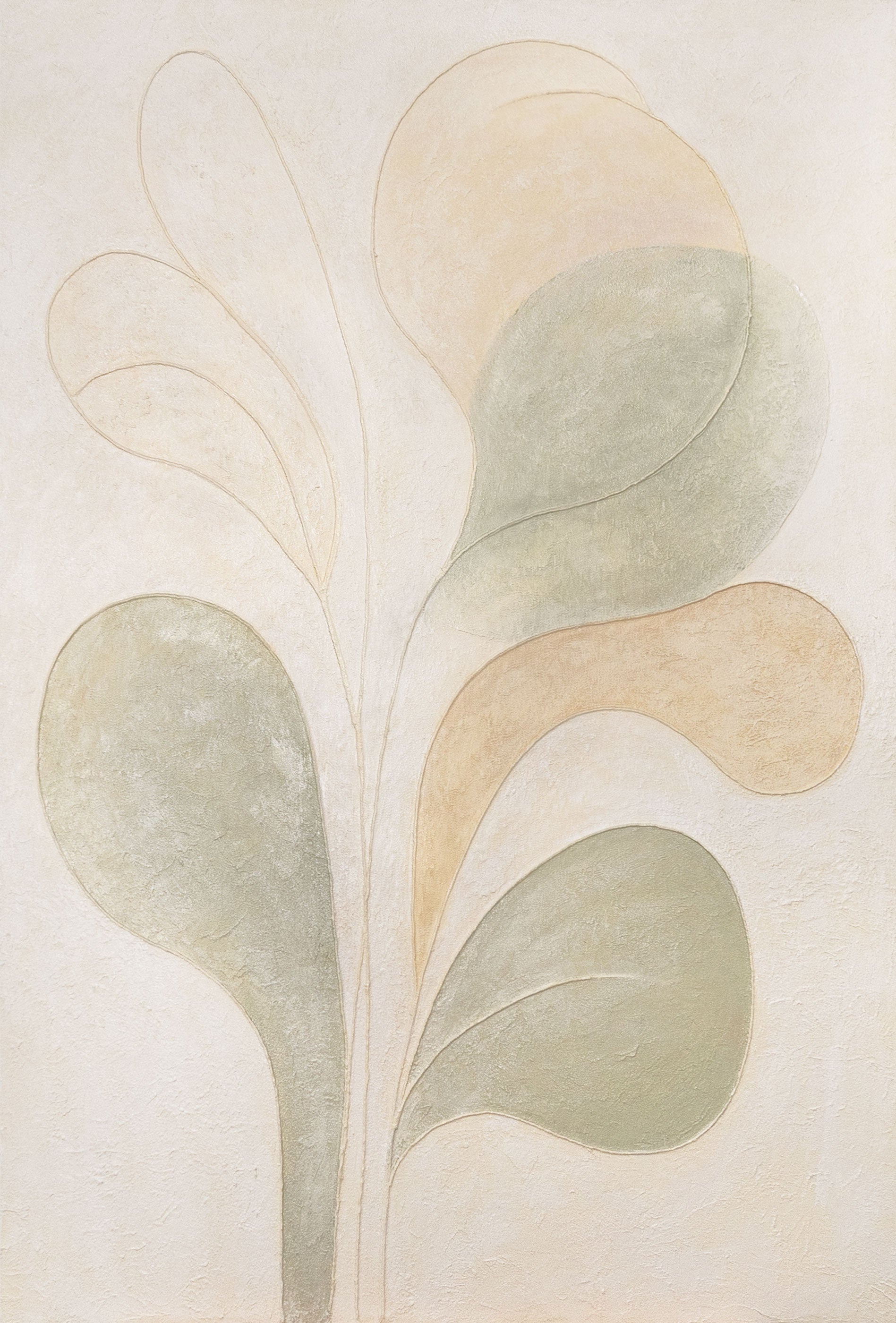 This hand-painted canvas painting impresses with its organic forms and soft color tones in Beige, Green, and Sand. Crafted with fine texture, the artwork feels light, harmonious, and elegant – a symbol of tranquility and natural beauty.