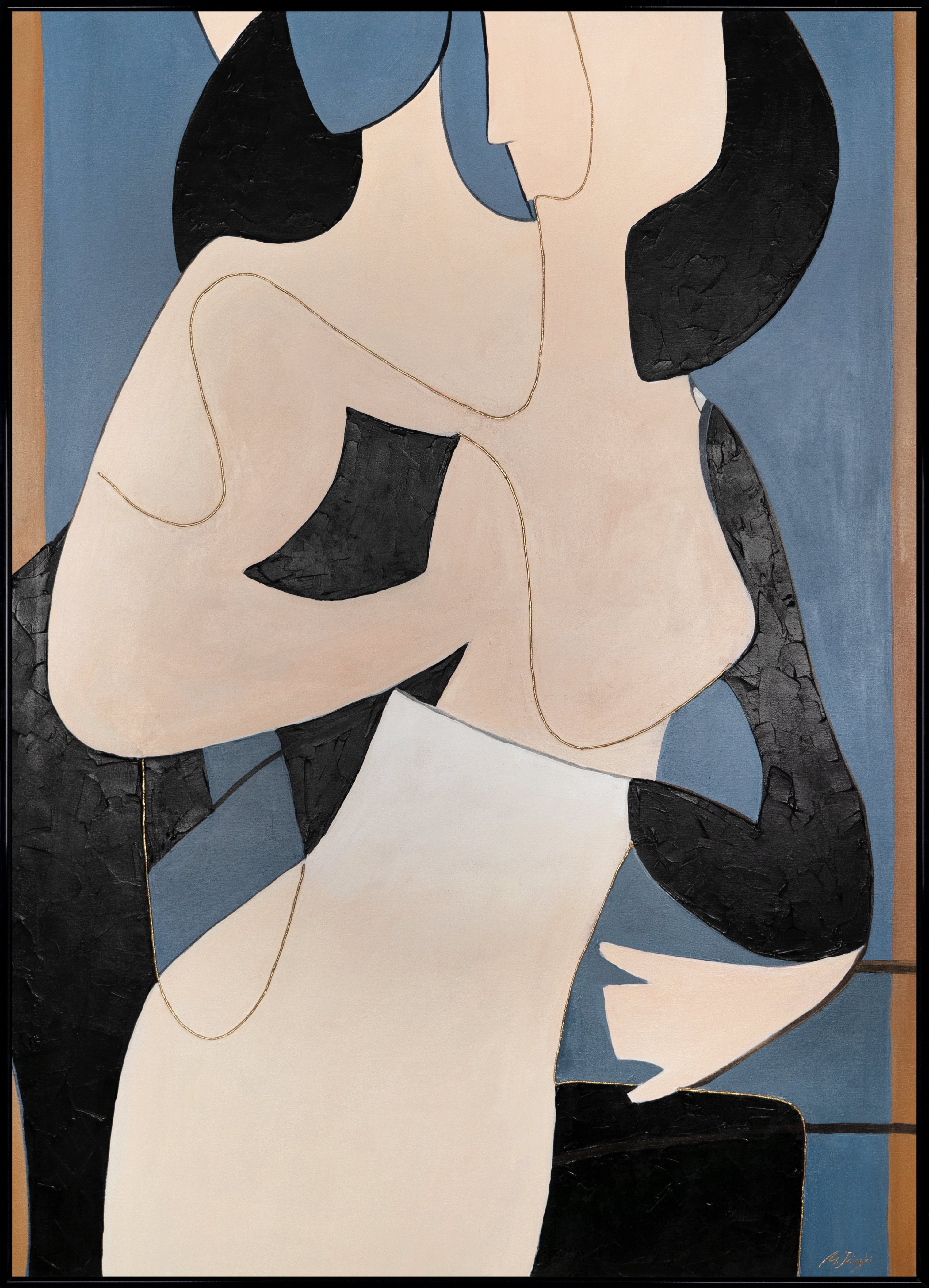 Immerse yourself in the world of abstract elegance with our hand-painted large abstract wall art. This one-of-a-kind piece features two enigmatic figures, masterfully rendered in a symphony of colours that will captivate and inspire. Each stroke on the canvas is applied with meticulous attention to detail, showcasing the artist's passion and skill.