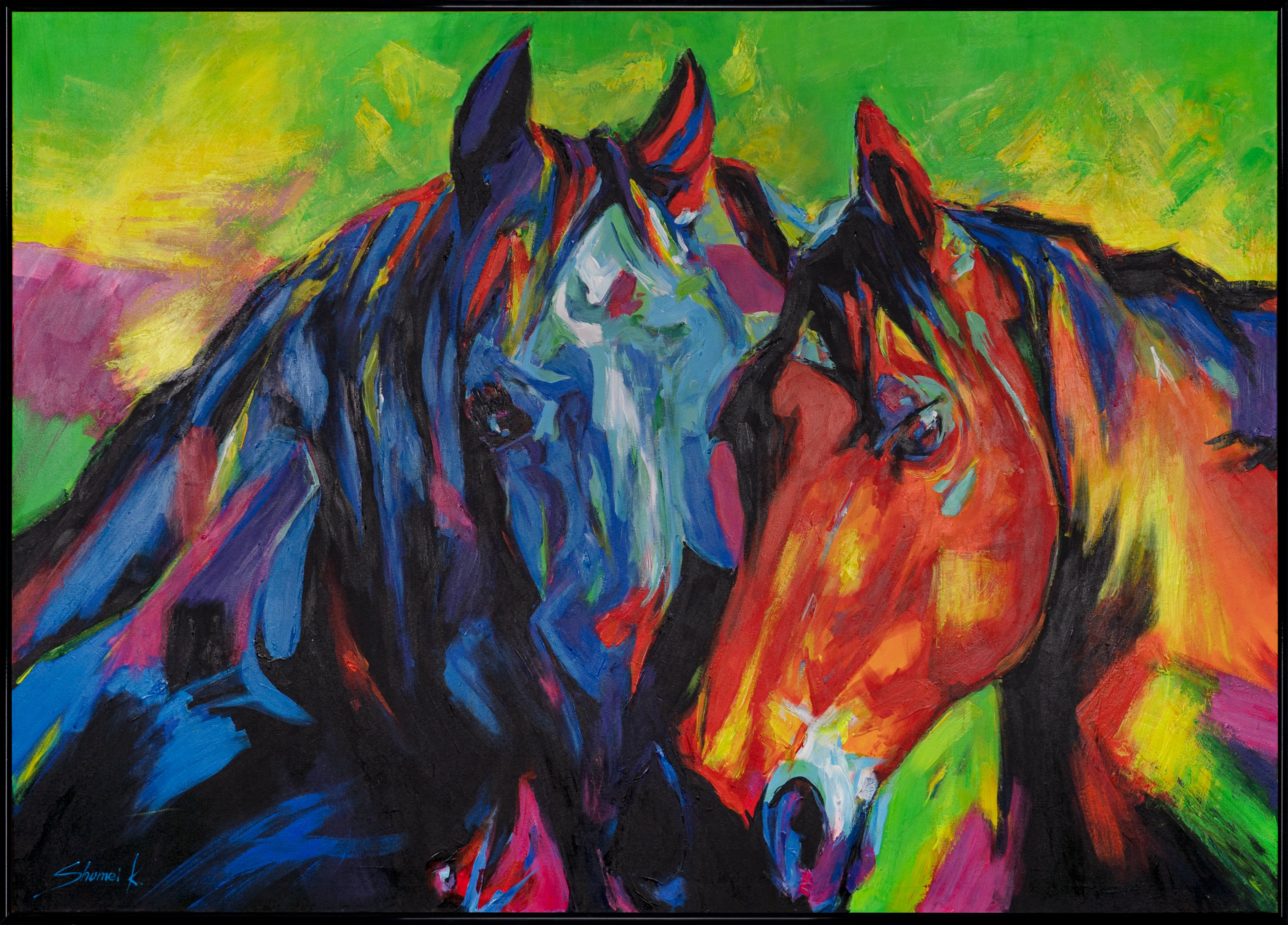 Wanddeko Wohnzimmer moderne Gemälde mit Rahmen "Vielfarbige Mähnen" bunte Pferde