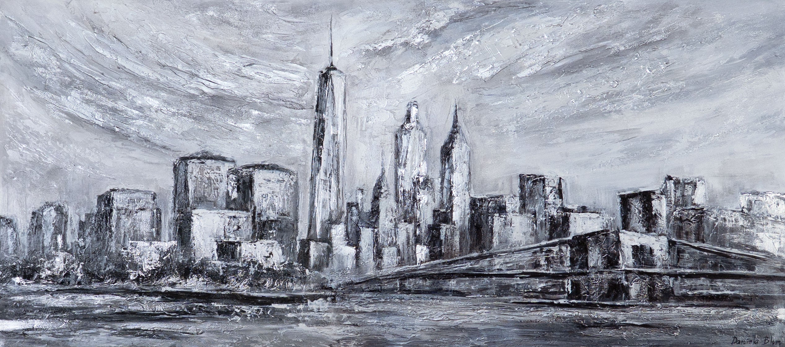 • Skyline Gemälde in Grau – abstraktes Stadtbild auf Leinwand