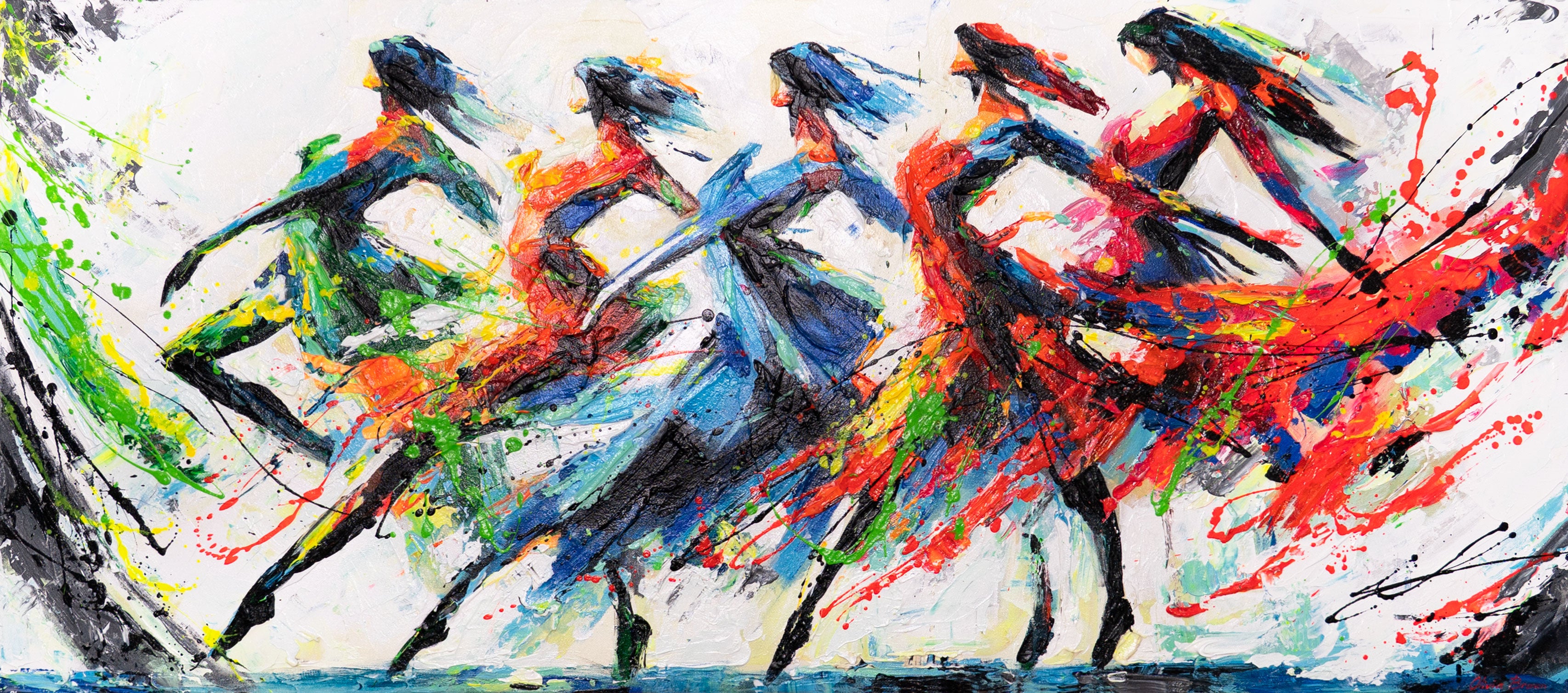 Whether in the living room, hallway, or dance studio, this hand-painted artwork brings energy, creativity, and joy to your spaces and will undoubtedly be a focal point on any wall.