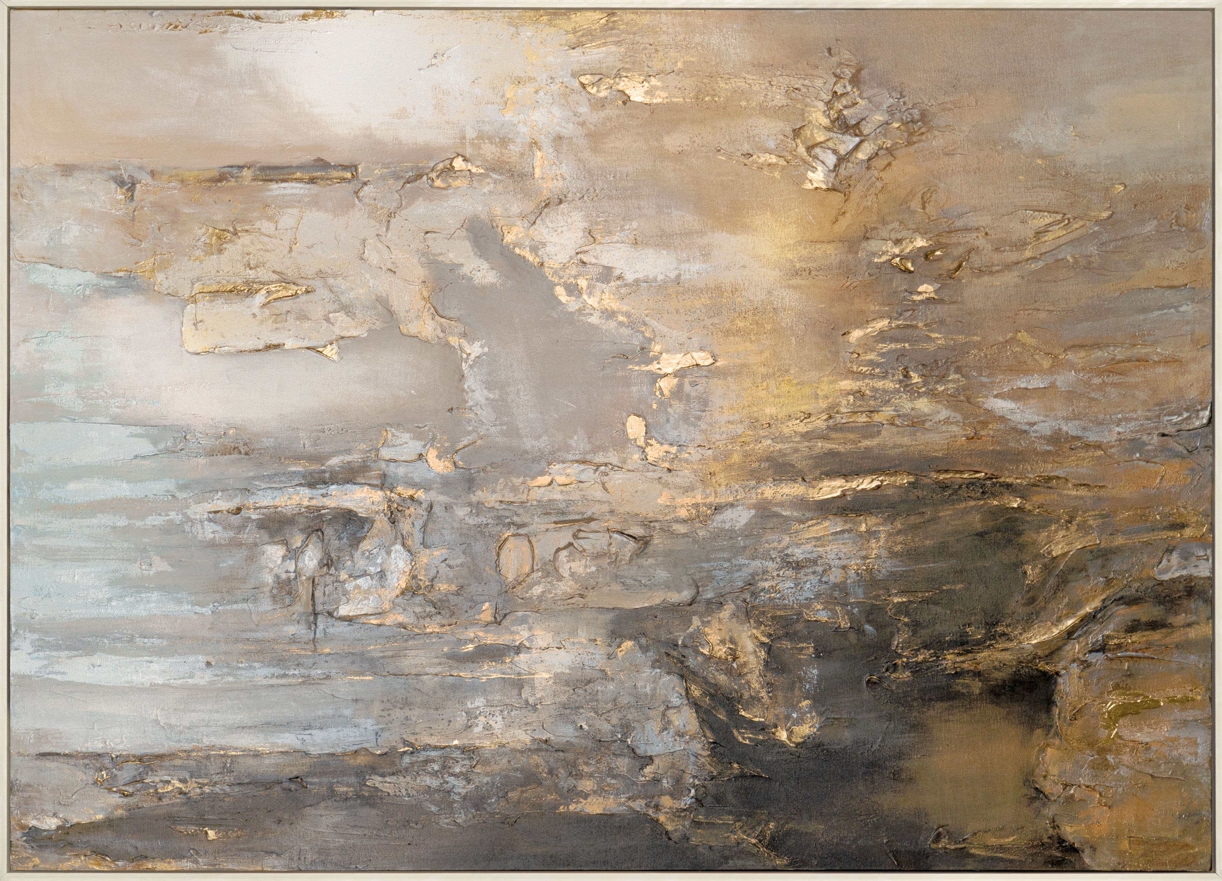 Discover the fascinating world of abstract art with the painting "Golden Harmony." This hand-painted artwork on canvas brings a touch of elegance and modernity to your living room. The harmonious combination of golden and beige tones creates a calming and stylish atmosphere.