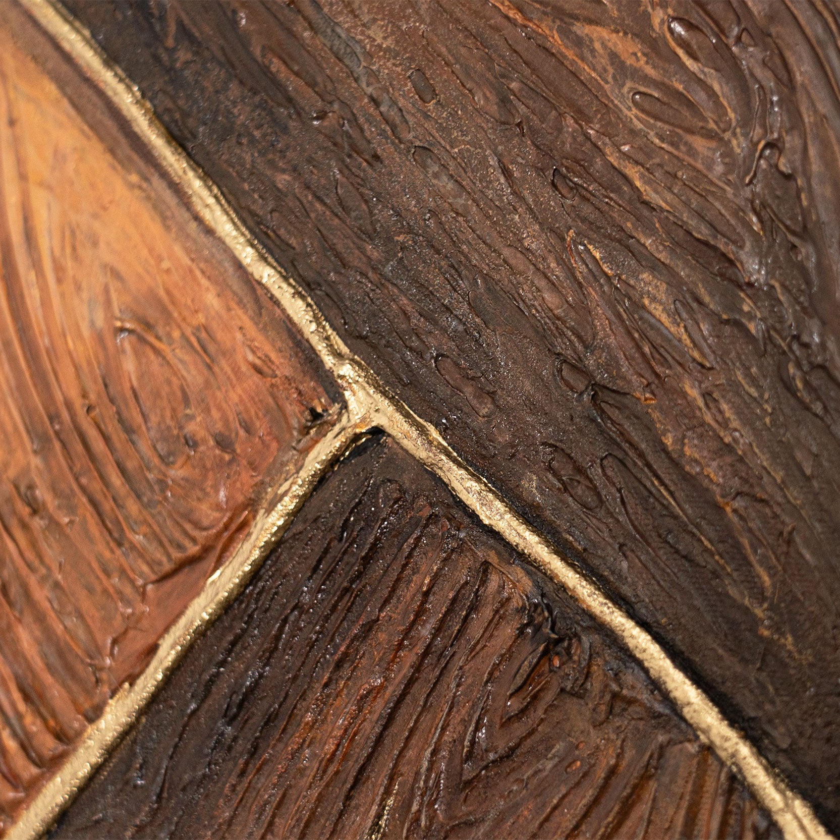 • Geometrisches abstraktes Wandbild in Holzoptik mit Brauntönen, Leinwand