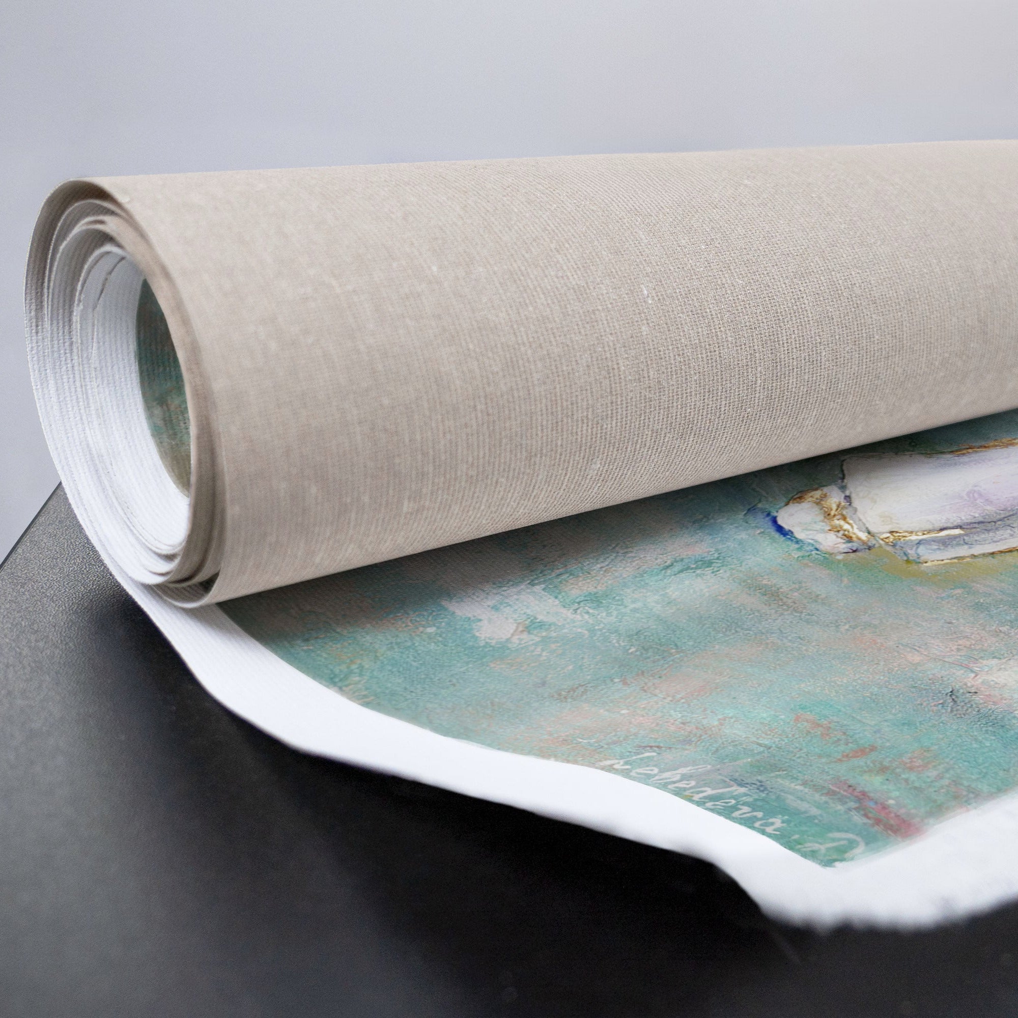 • Detail der Leinwandstruktur bei handgemaltem Bild