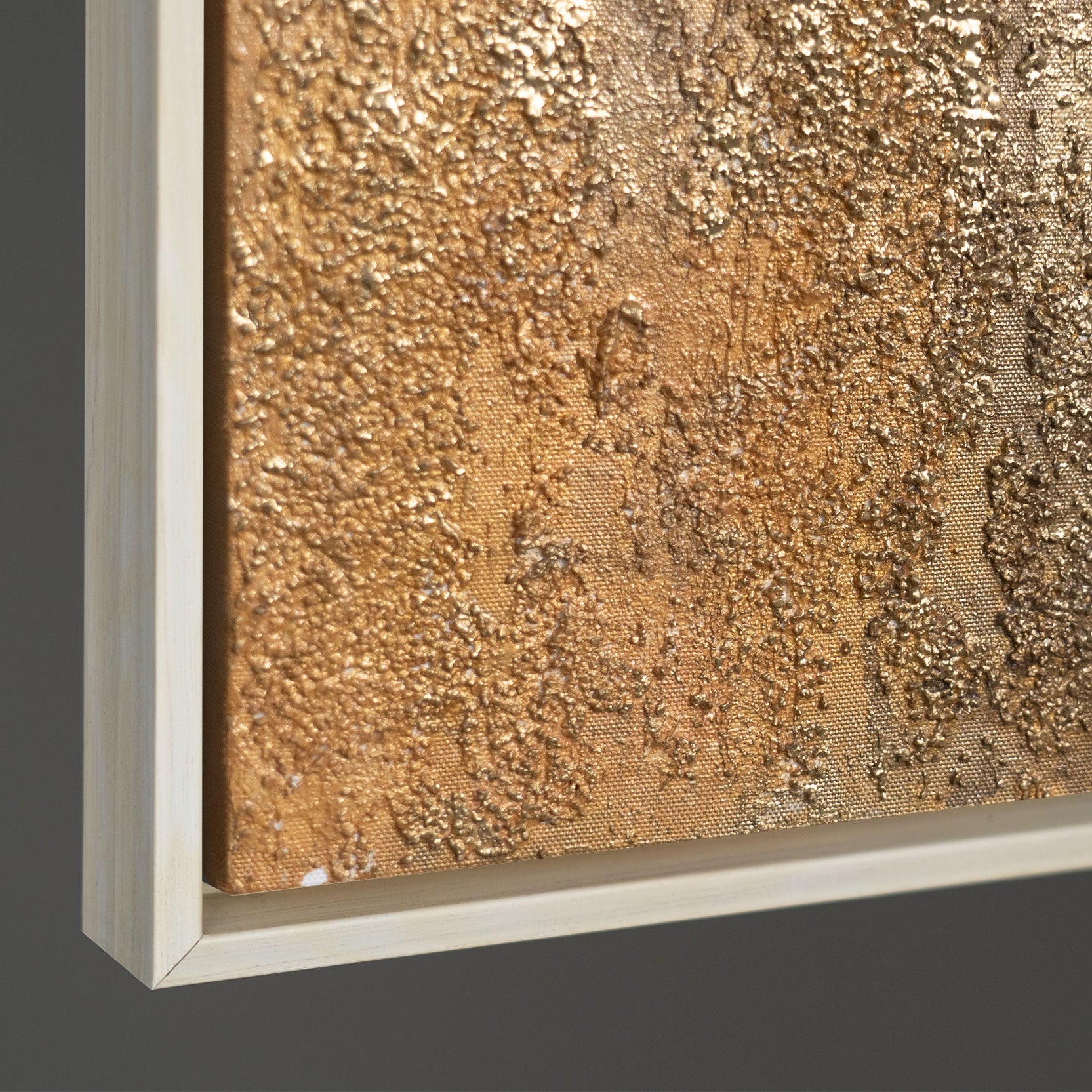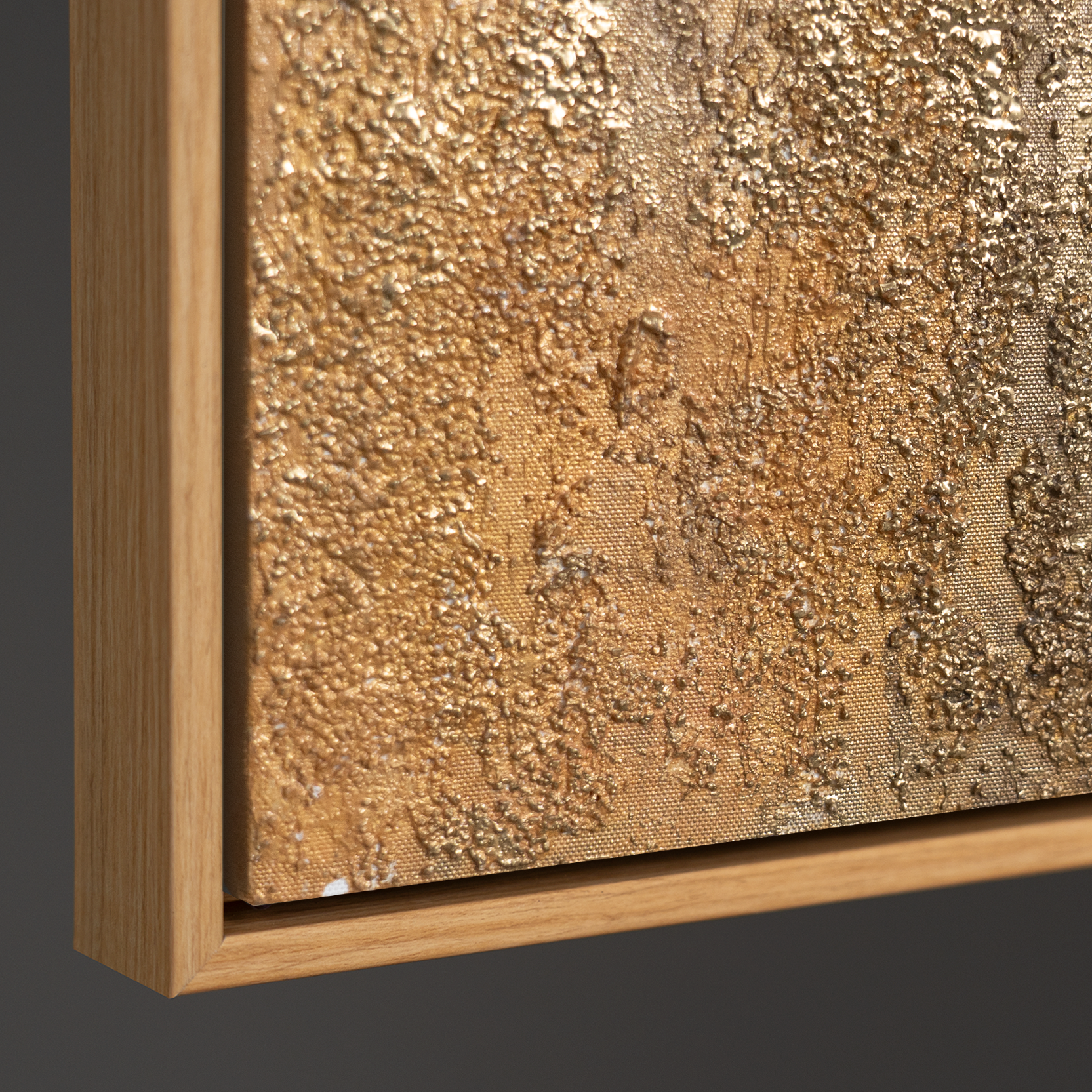 • Seitliche Ansicht eines strukturierten Leinwandbildes, stabiler Holzrahmen