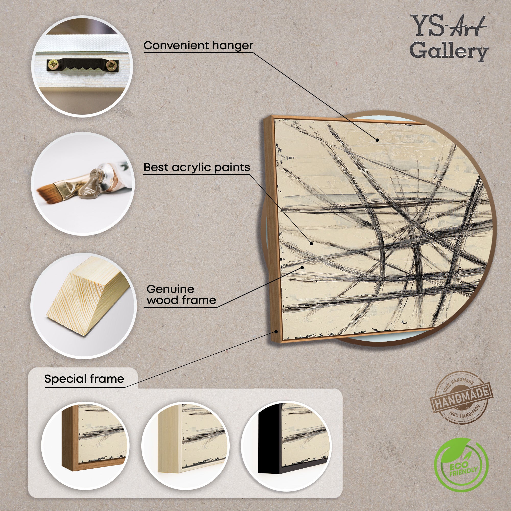 „Parallelen und Schnittpunkte“ ist ein kraftvolles abstraktes Acrylgemälde, das von dynamischen Linien, bewussten Überlagerungen und spannungsvollen Kreuzungen lebt. Schwarze, grafische Pinselzüge durchziehen die helle, strukturierte Oberfläche und erzeugen eine starke visuelle Tiefe. Die Kombination aus Beige, Creme und Schwarz verleiht dem Werk einen modernen, architektonischen Charakter mit klarer Aussage.
