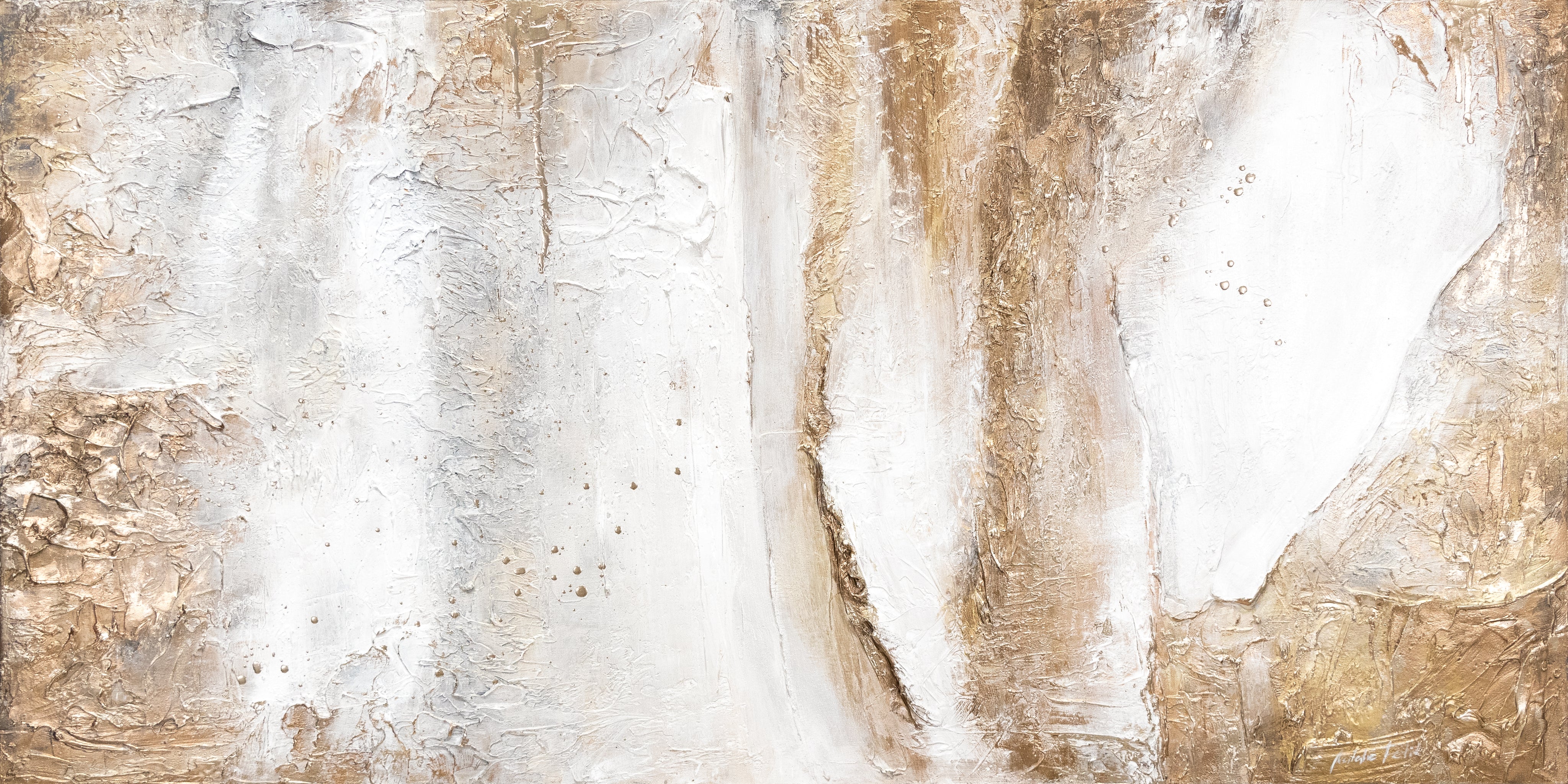 • Handgemaltes Wandbild Acryl Relief Weiß Gold
