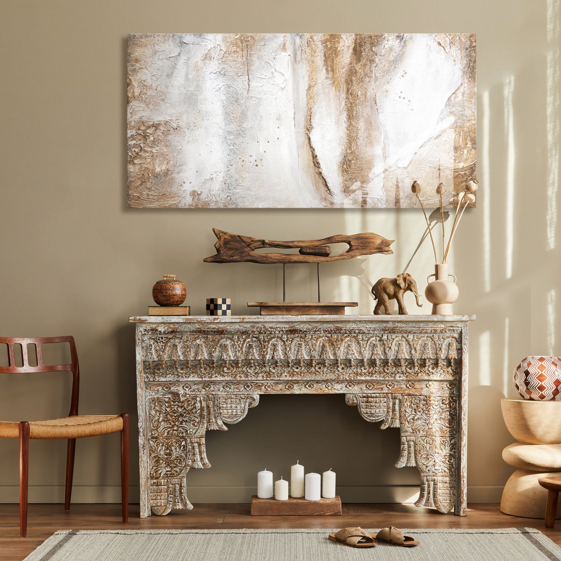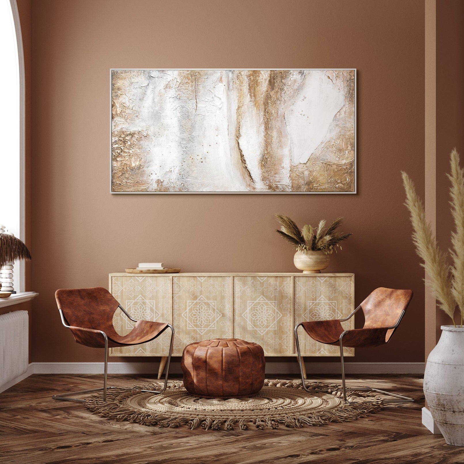 • Abstraktes Acrylbild Struktur Wanddeko Gold Beige
