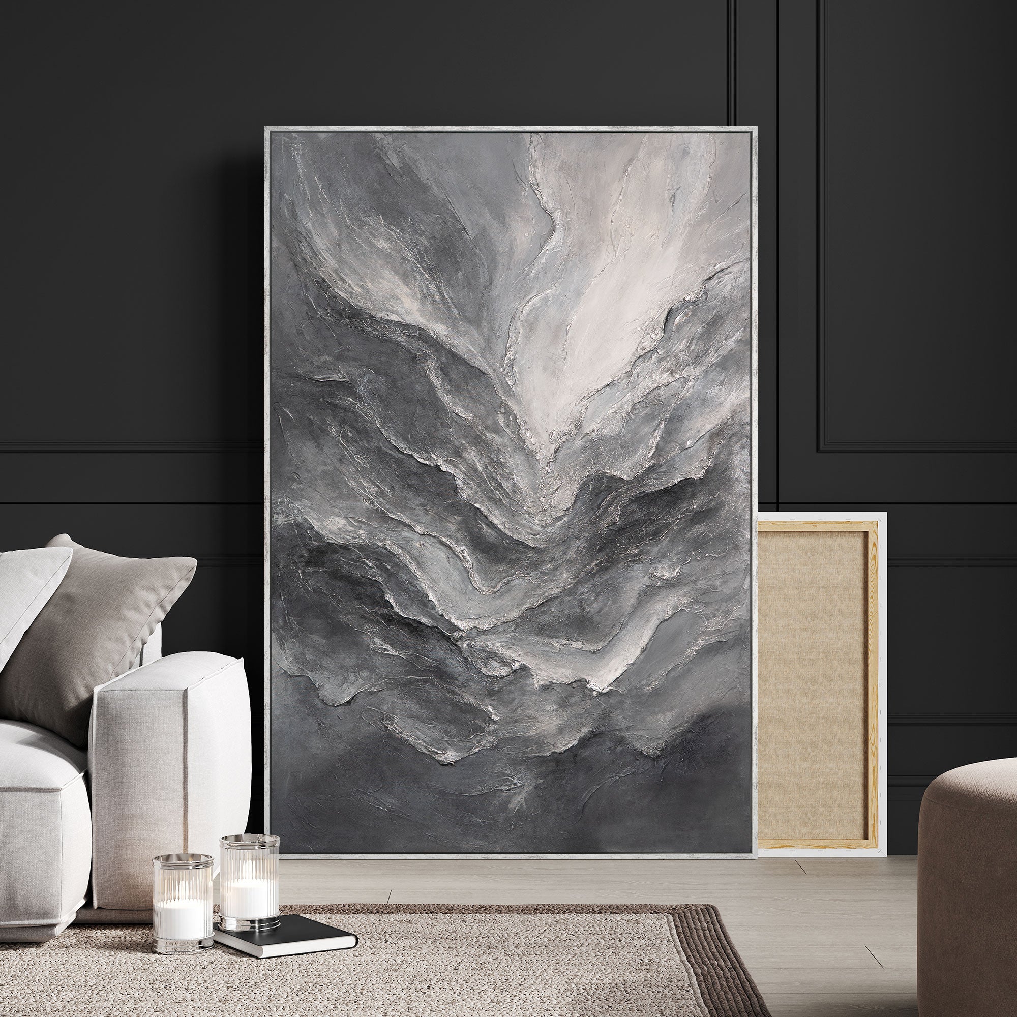• Handgemaltes Acrylbild mit Rahmen „Erinnerung der Felsen“ – Moderne Wandkunst auf Leinwand