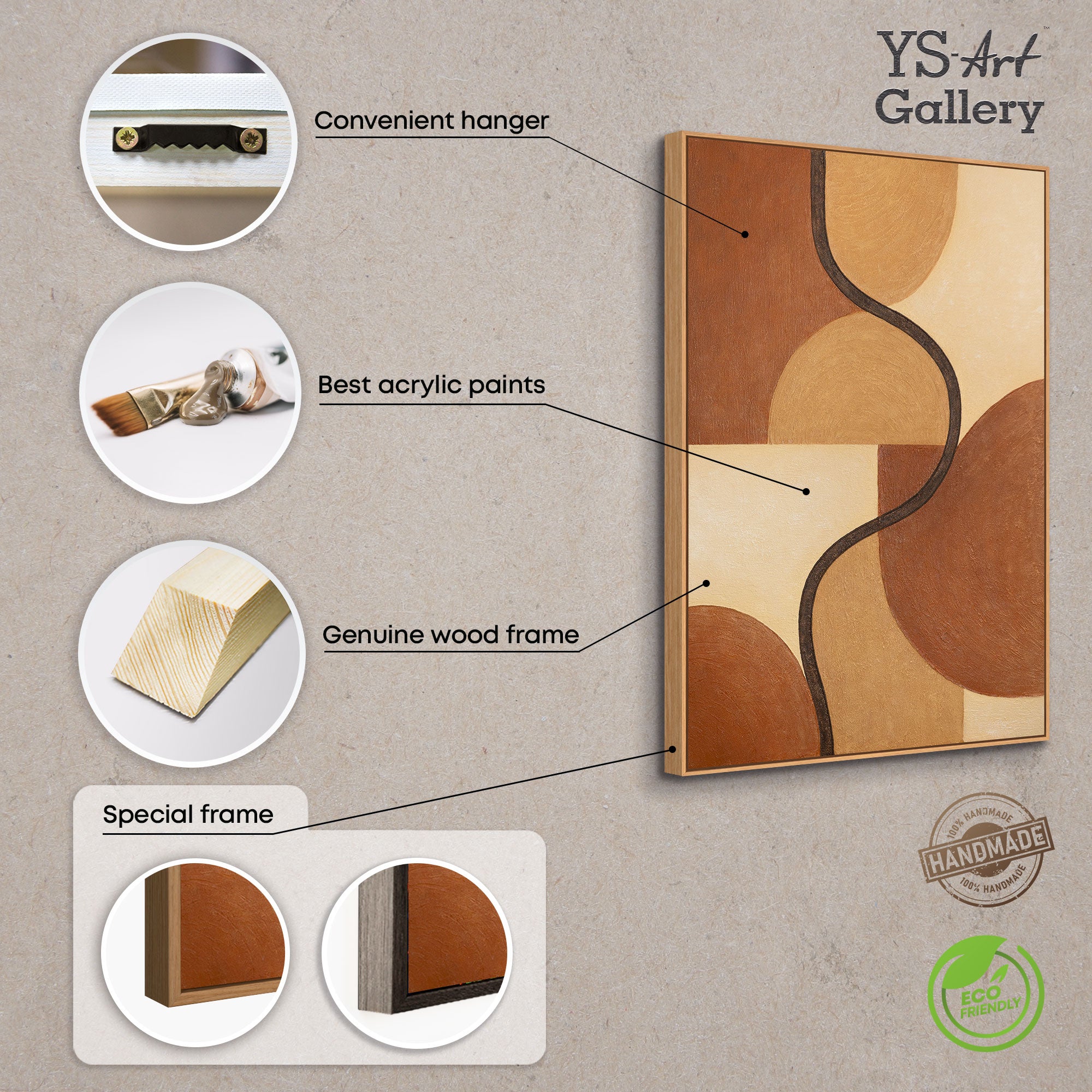Abstraktes Geometrie Gemälde mit Rahmen „Verflechtung der Formen“ - Wanddeko in Erdtönen