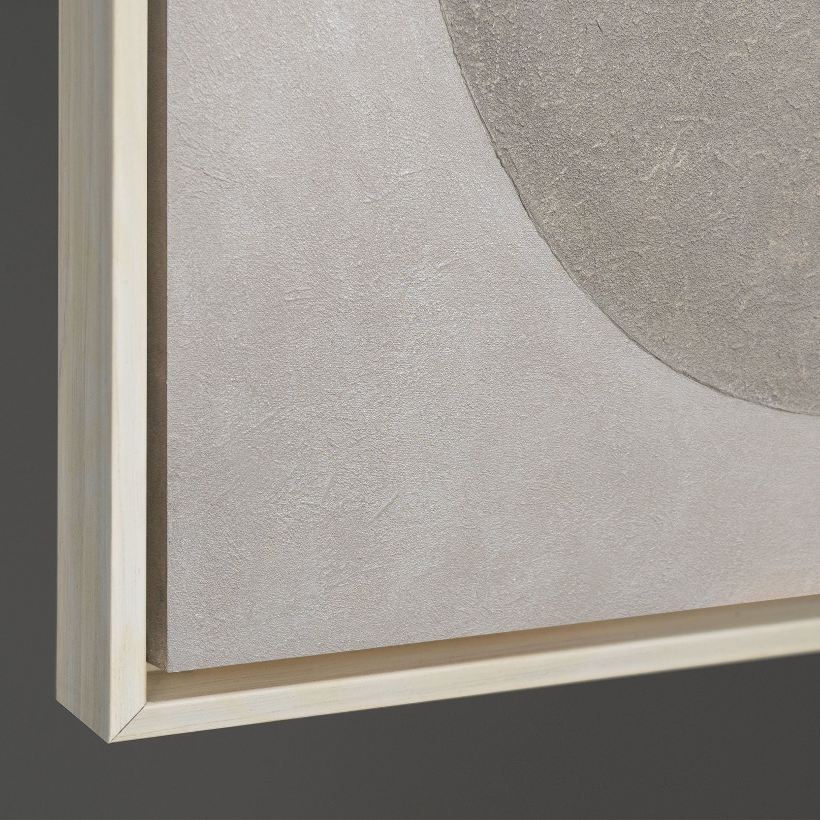 „Stille der Geometrie“ ist ein Kunstwerk der Balance und Reduktion. Schlichte geometrische Formen – Kreis, Rechteck und Halbfläche – treffen auf feine Struktur und harmonische Farbtöne aus Grau und Beige. Diese Komposition vermittelt Ruhe, Präzision und die stille Eleganz minimalistischer Gestaltung.