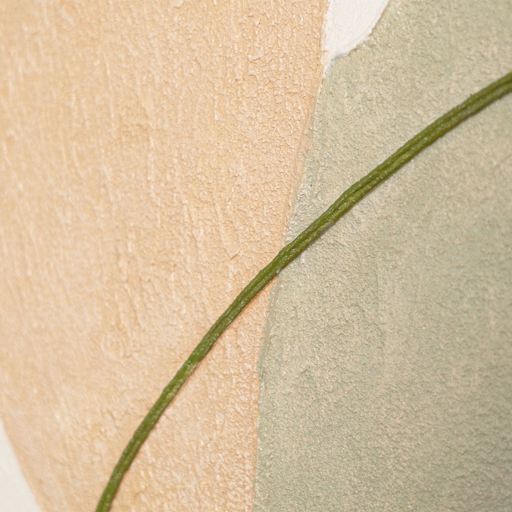 „Verflechtung“ ist ein handgemaltes Acrylbild, das durch seine sanfte Linienführung und harmonische Farbkomposition besticht. Zarte Beigetöne, cremefarbene Flächen und ein feiner grüner Schwung schaffen eine ruhige, organische Bewegung, die sowohl elegant als auch modern wirkt.