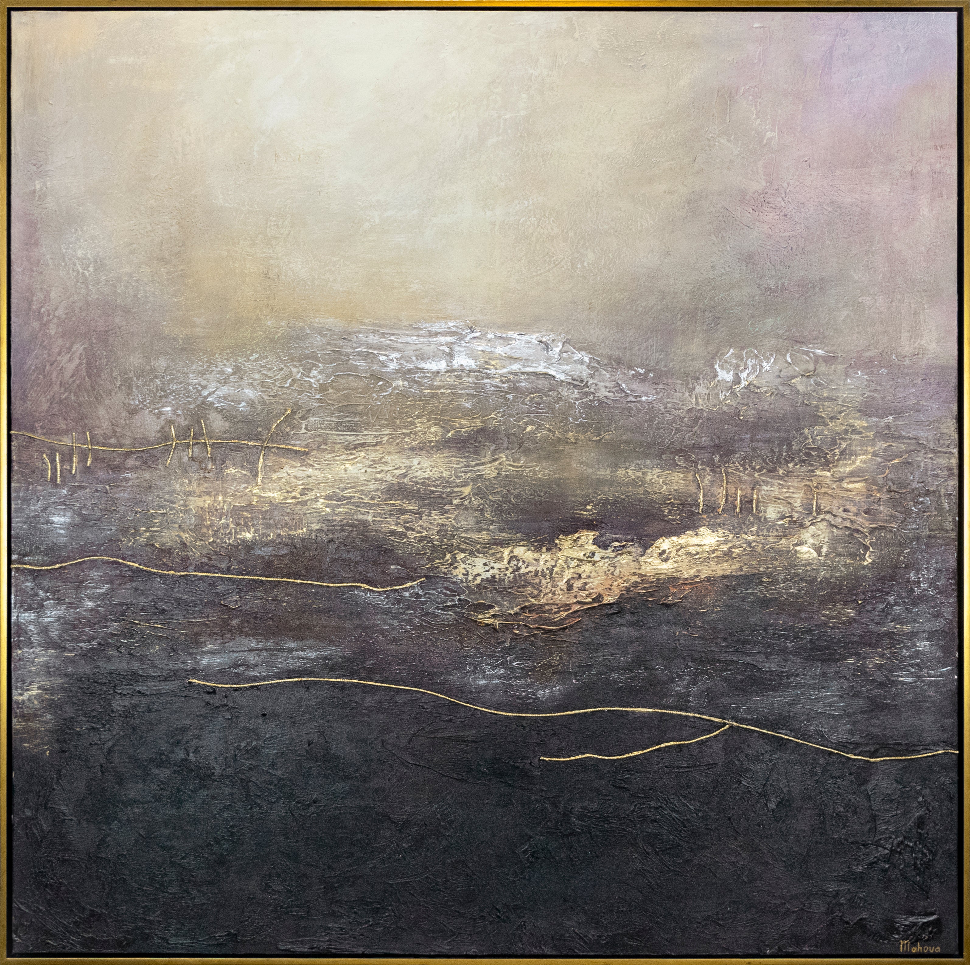 This abstract canvas artwork impresses with its textured surface and careful combination of colors. The golden details subtly contrast against the dark background, lending the image an elegant, timeless aesthetic. Every detail of the painting was applied by hand, adding a special touch to any room, whether living room, office, or bedroom. The artwork is ready to shine on your wall, creating a calm yet powerful atmosphere.