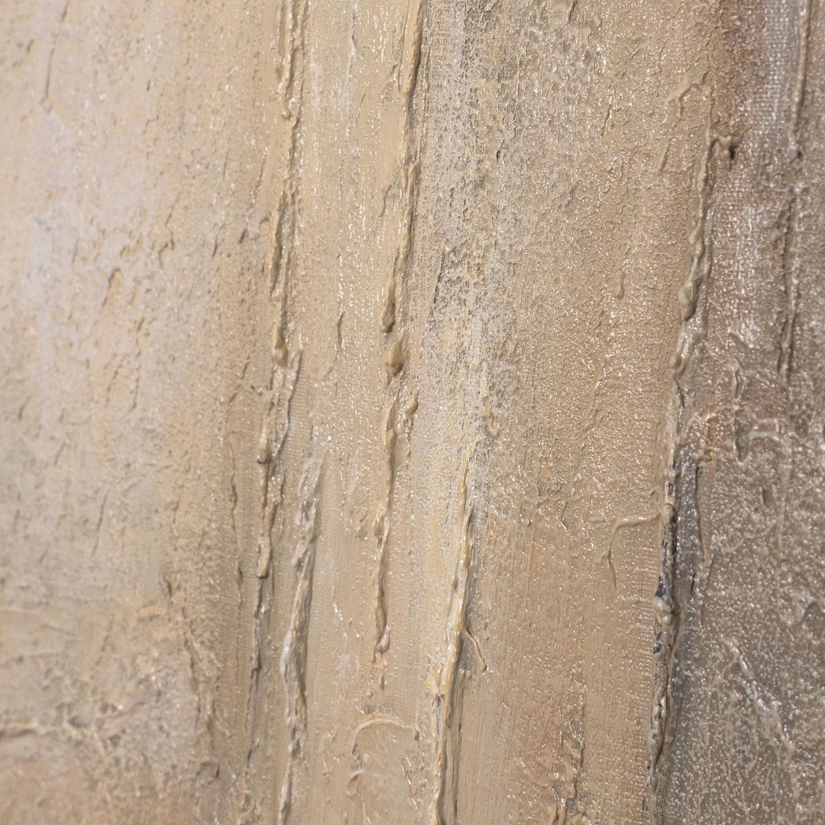 „Vertikalen der Zeit“ ist ein ruhiges, strukturiertes abstraktes Gemälde, das durch horizontale und vertikale Schichtungen eine klare, ausgewogene Komposition bildet. Die sanften Übergänge zwischen Beige, Grau und warmen Naturtönen erinnern an geologische Formationen und verleihen dem Acrylbild eine stille Tiefe. Die fein ausgearbeitete Oberfläche unterstreicht den handgemalten Charakter dieses Werkes.
