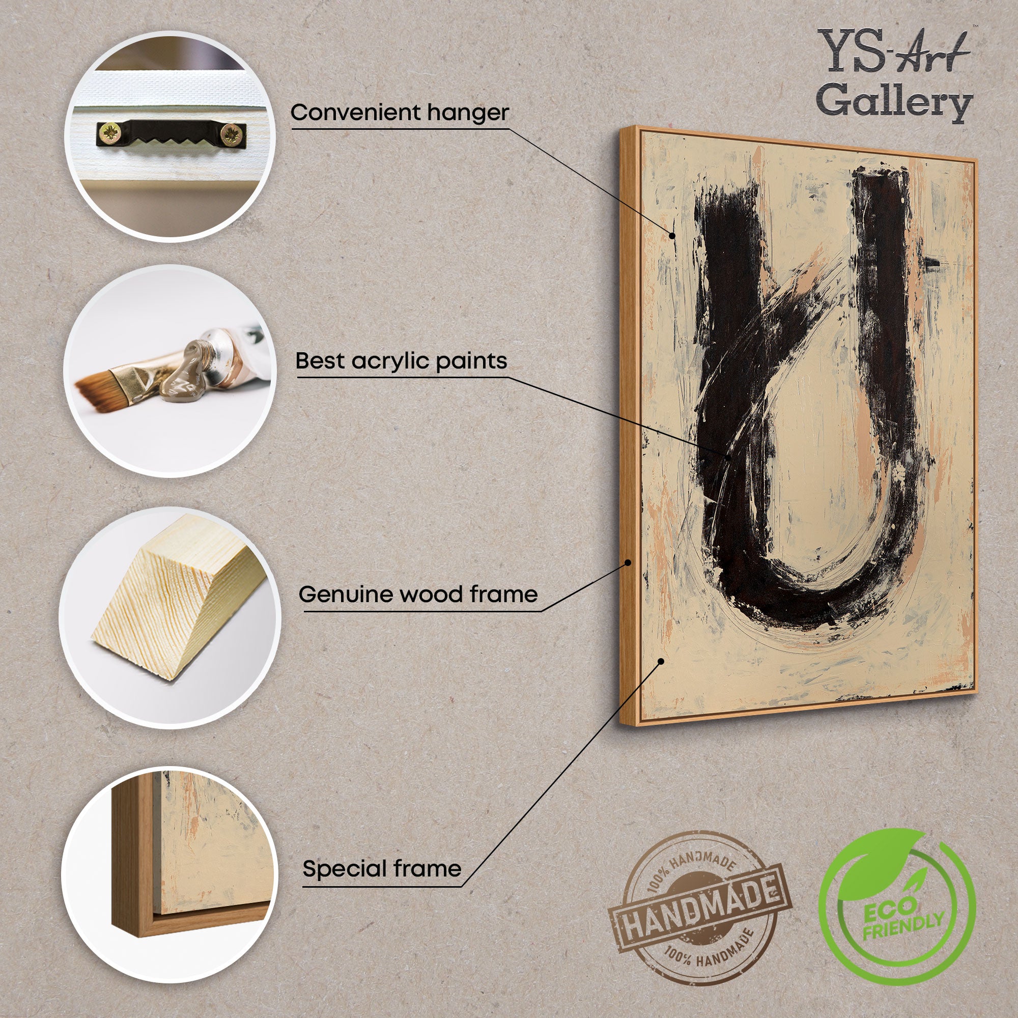 • Abstraktes Acrylbild „Stille dazwischen“ – Handgemalte abstrakte Kunst in Beige und Schwarz