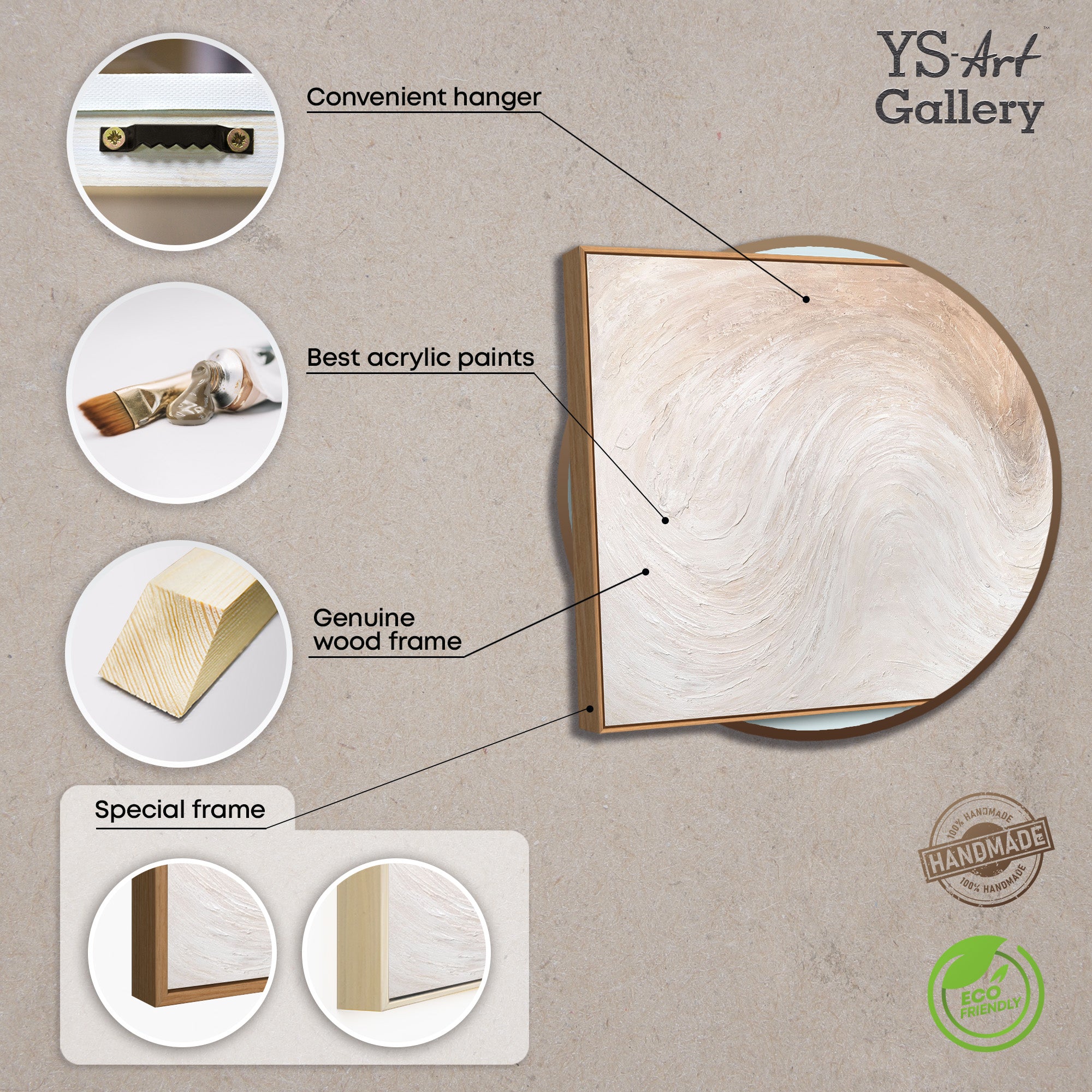Das handgemalte Leinwandbild wird im Rahmen präsentiert und eignet sich ideal als moderne Wandkunst für Wohnzimmer, Schlafzimmer oder stilvolle Arbeitsbereiche. Die helle Farbwirkung öffnet den Raum optisch und sorgt für eine entspannte, hochwertige Atmosphäre.