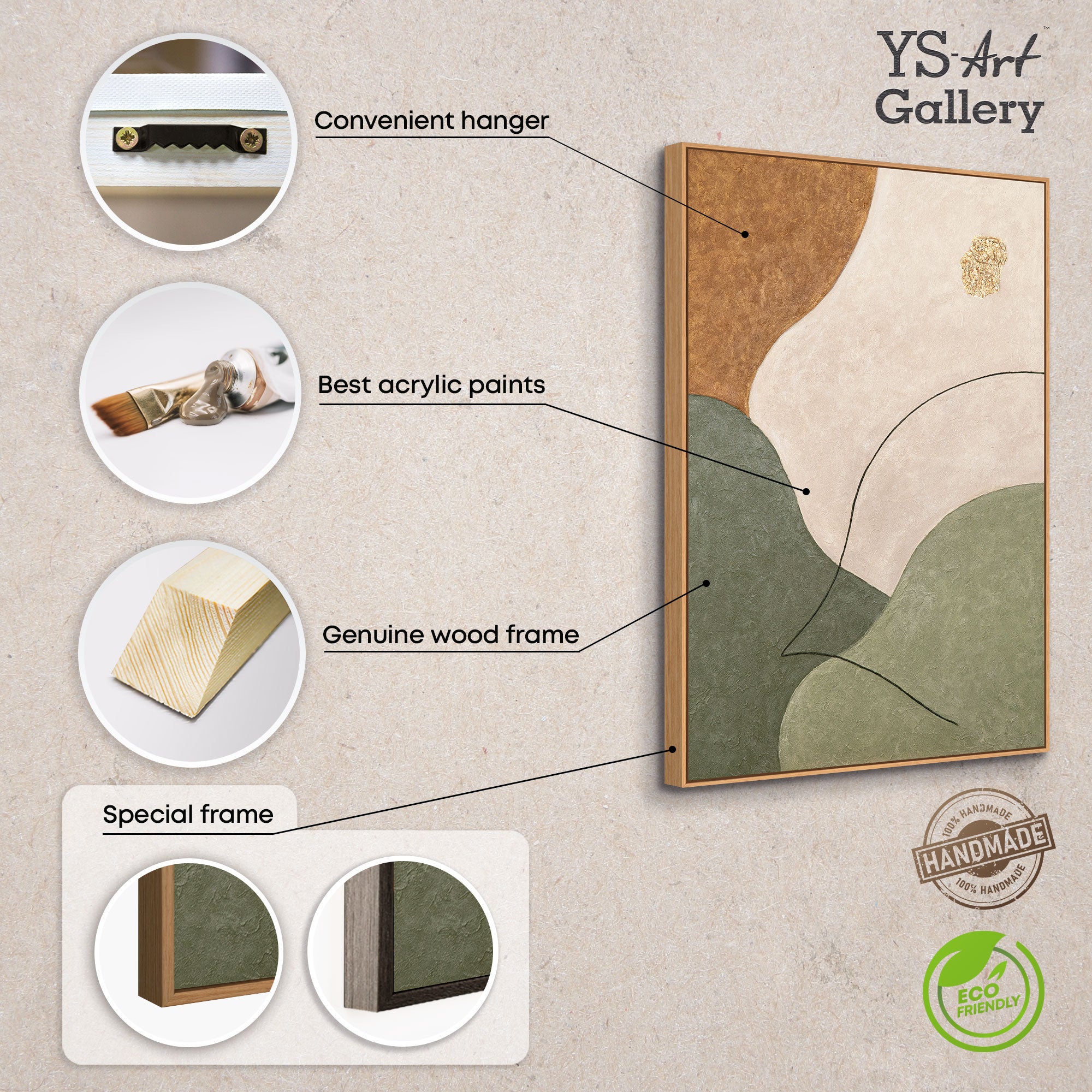 Abstraktes Wandbild mit Struktur in Beige, Grün & Gold – Modernes Acrylgemälde auf Leinwand