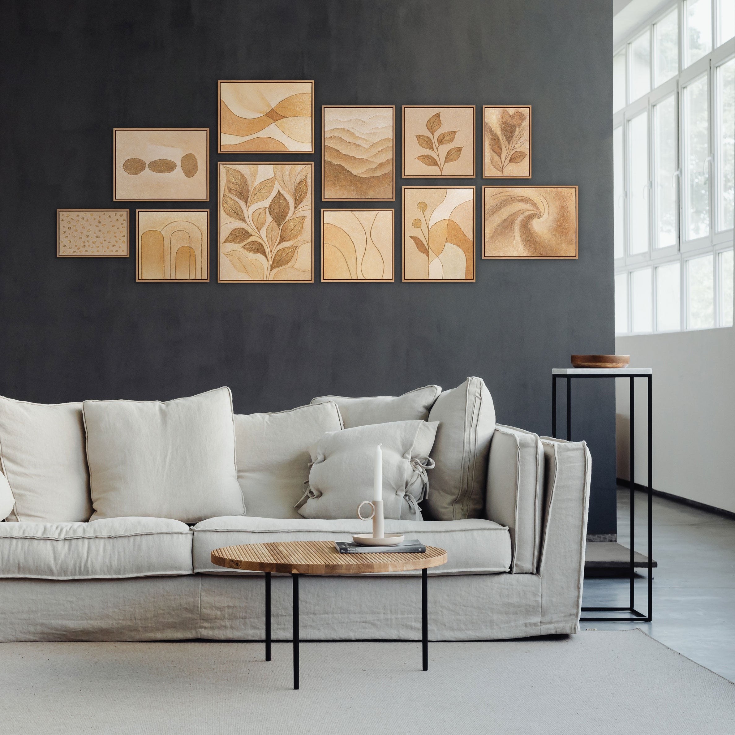 Individuelle Gestaltung: Dieses Set bietet Ihnen grenzenlose Freiheit. Wählen Sie zwischen einem 3er Bilder Set, einer 5-teiligen Komposition oder dieser beeindruckenden 9-teiligen Galeriewand. Unser Bilderset Wohnzimmer passt sich modular Ihren Räumlichkeiten an.