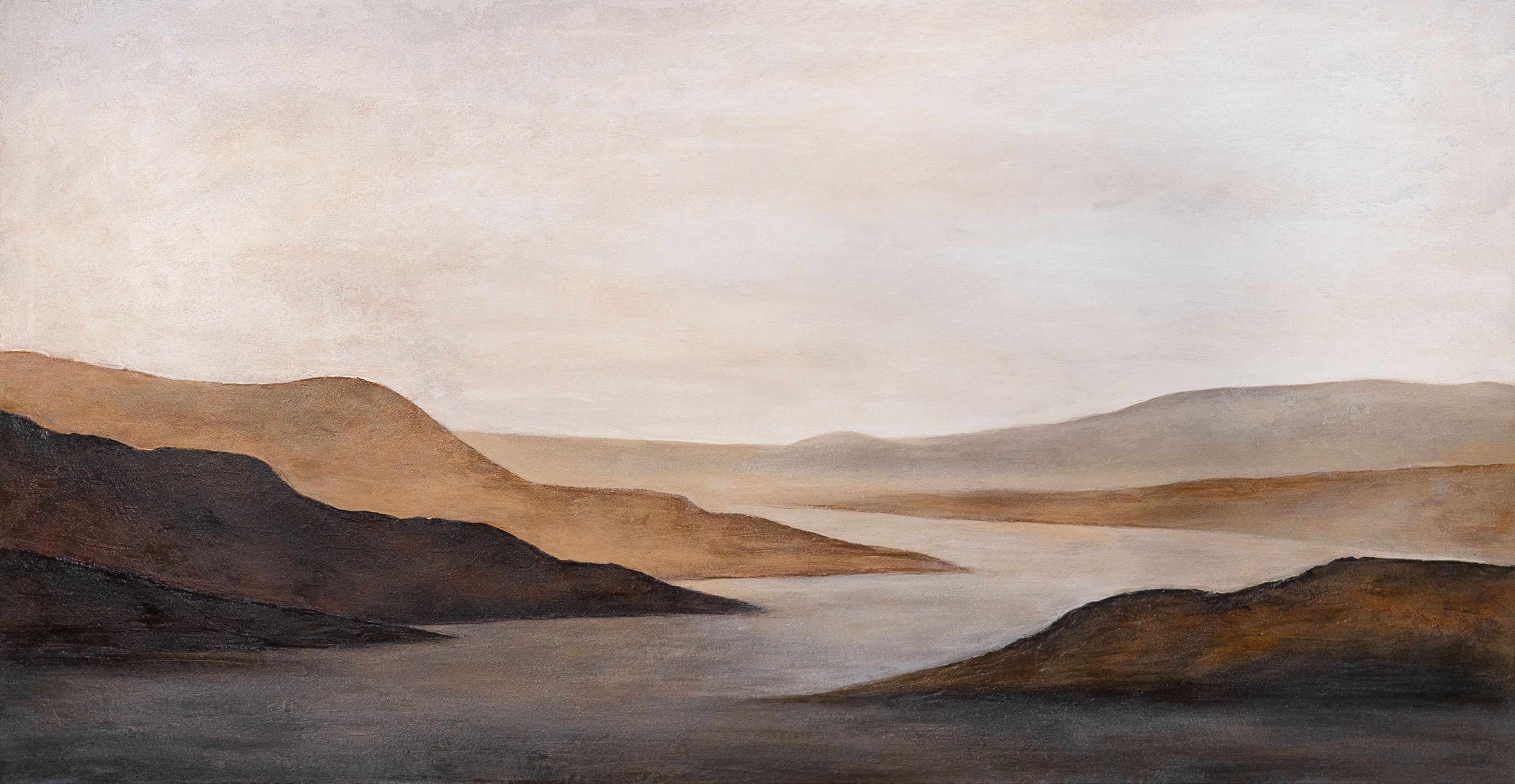 Acrylic Painting on Canvas "Gentle Sunrise" – Hand-Painted Landscape in Beige & Brown