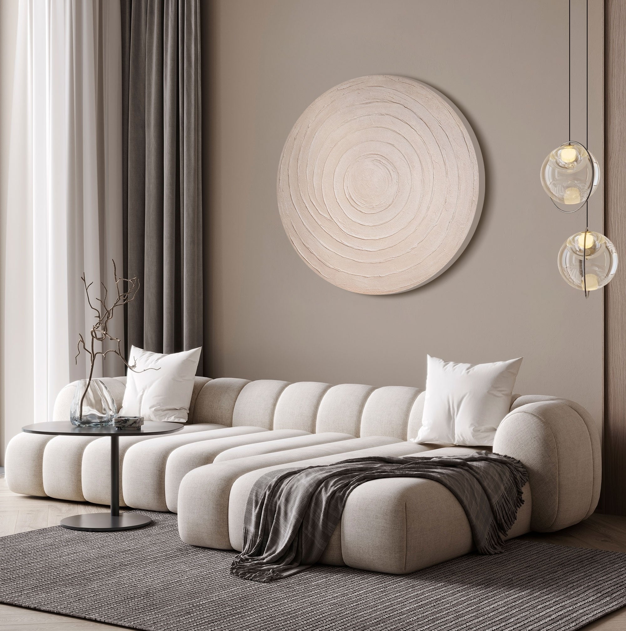 • Rundes Bild kaufen Abstraktes Acrylbild Beige Pastell