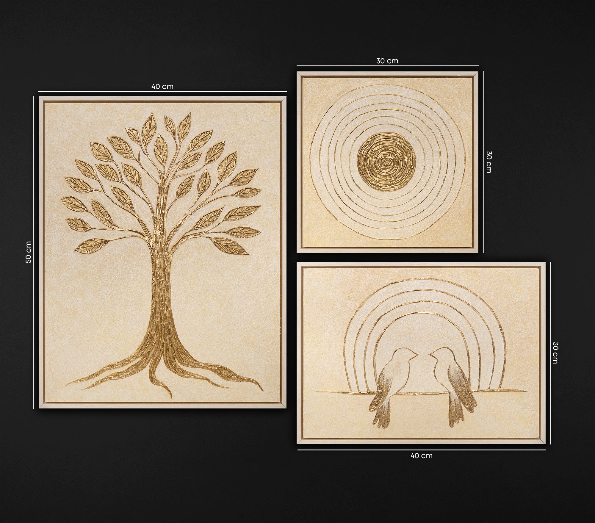 Die Kombination aus warmen Naturtönen, Goldnuancen und einem frischen Blauton macht das Werk zu einem eleganten Beispiel moderner Malerei Acryl. Als Acrylbild in Beige wirkt es besonders ruhig und harmonisch, während der Vogel auch als feiner Akzent eines Acrylbildes in Blau wahrgenommen wird. Diese Farbkomposition macht das Bild zu einem stilvollen Element unter exklusiven Wandbildern.