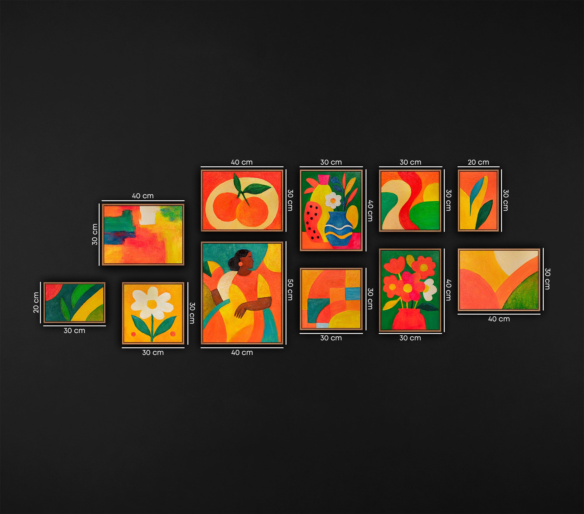 Farbenfrohe Inspiration für Ihr Zuhause: Ein Statement der Moderne Tauchen Sie ein in eine Welt voller Energie und Farbe. Das Set "Vibrant Life" ist ein außergewöhnliches Wandbilder Set Wohnzimmer, das florale Motive, Früchte und abstrakte Porträts in einer harmonischen 11-teiligen Komposition vereint. Diese modernen Bilder für das Wohnzimmer bringen mit ihren kräftigen Rot-, Orange- und Grüntönen sofortige Frische und moderne Kunst Acryl in jeden Raum.