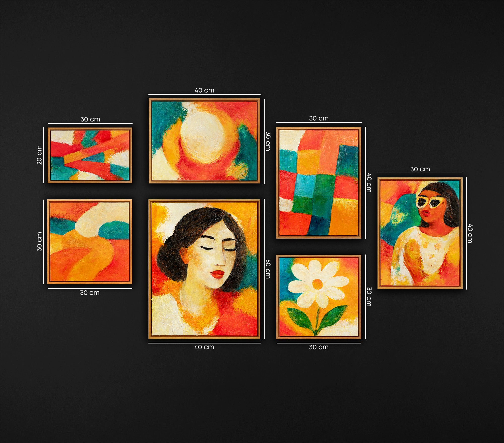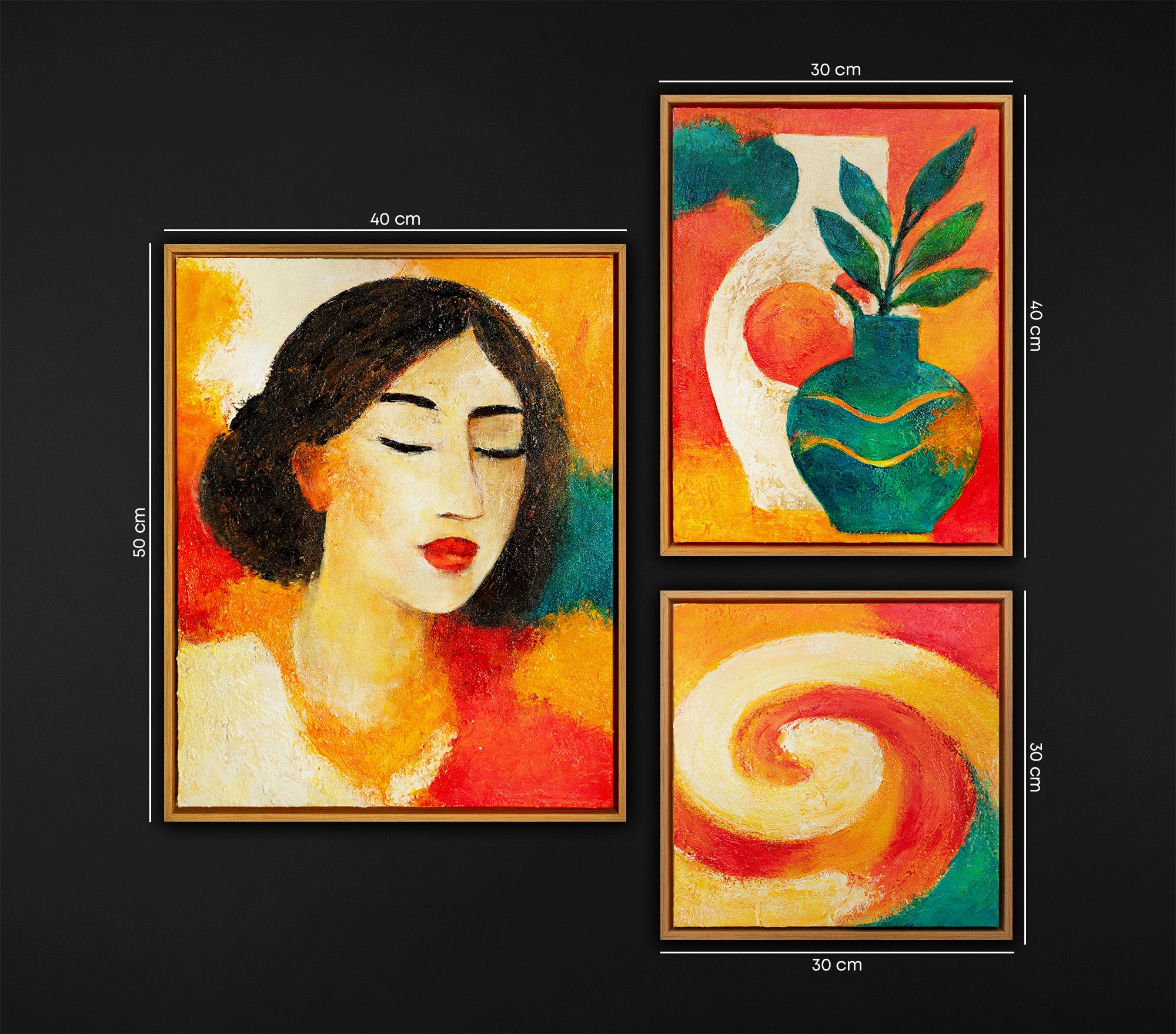Bilder set wohnzimmer mit Rahmen Acrylbilder Handgemalt portraet Frau Gelb Relief