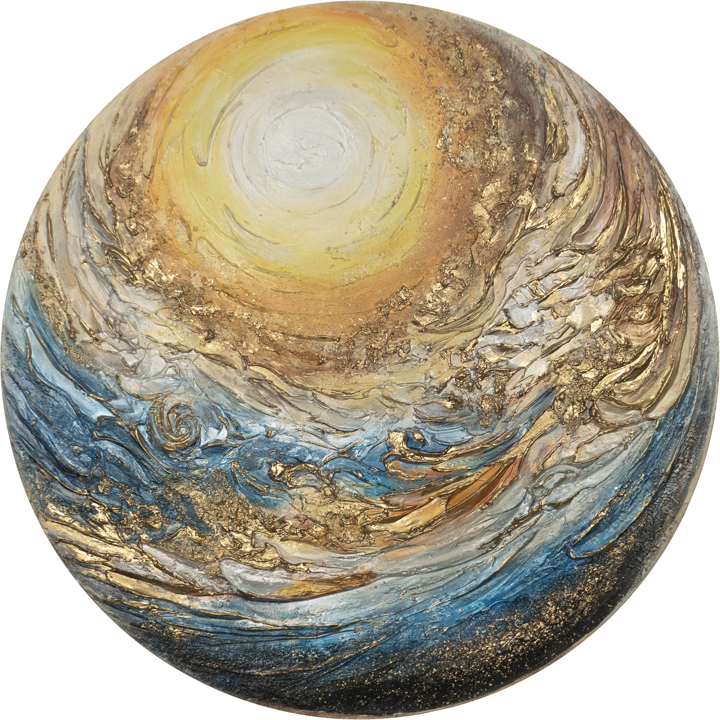 Colorful Abstract Wall Art "Goldsphere" – Planet-Inspired Acrylic Canvas