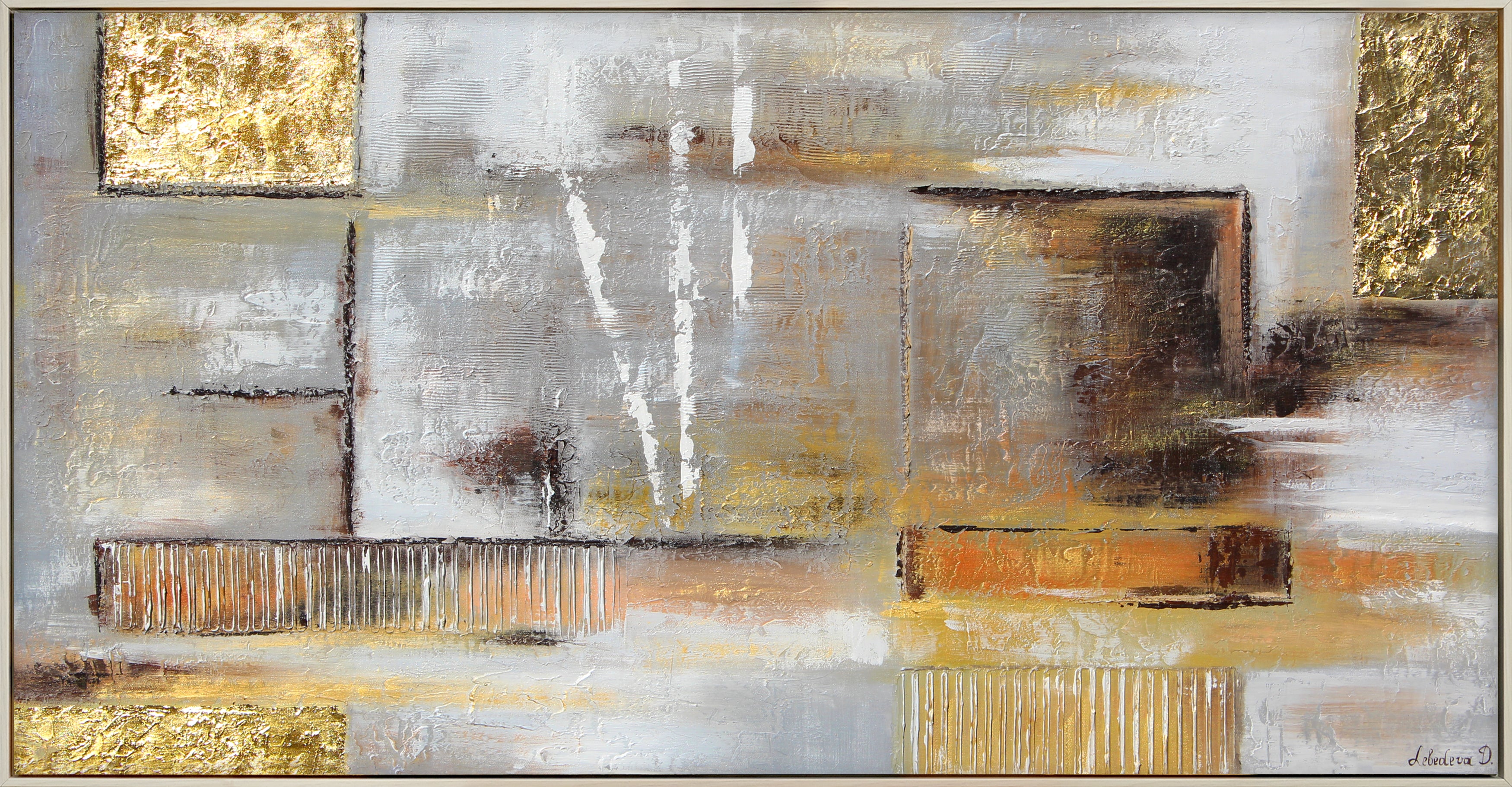 • Gold abstract painting with frame "Golden abstraction"