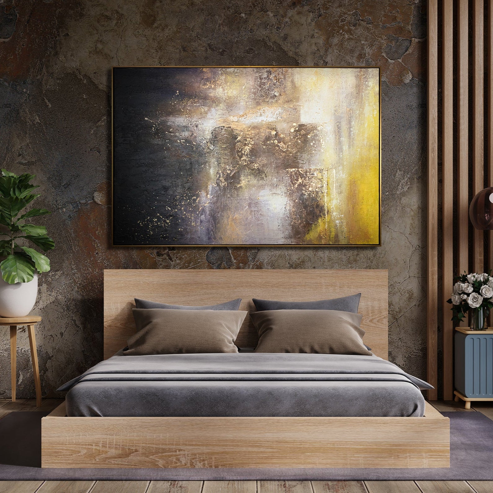 • Acrylmalerei Gold Grau Struktur Design Schlafzimmer