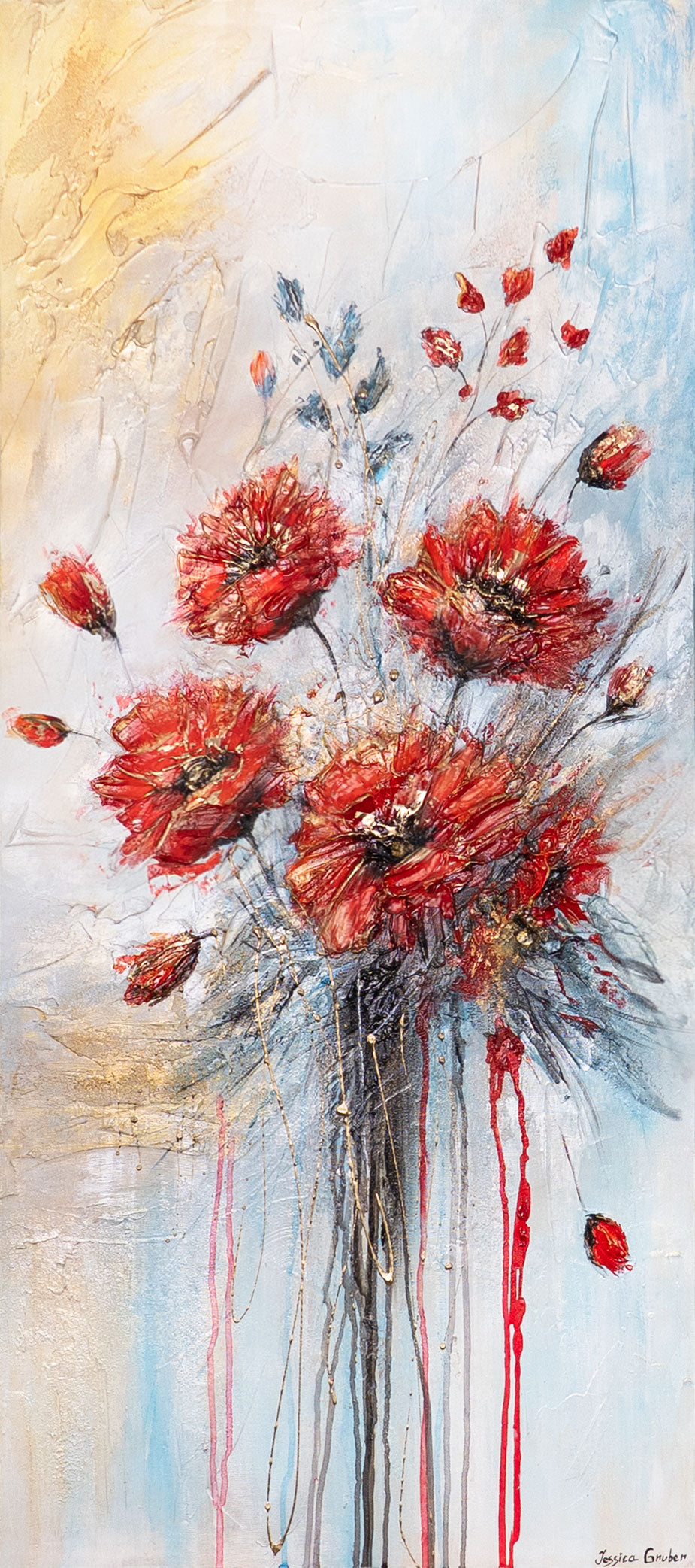 • Signatur am Leinwandrand – handgemaltes Mohnblumenbild