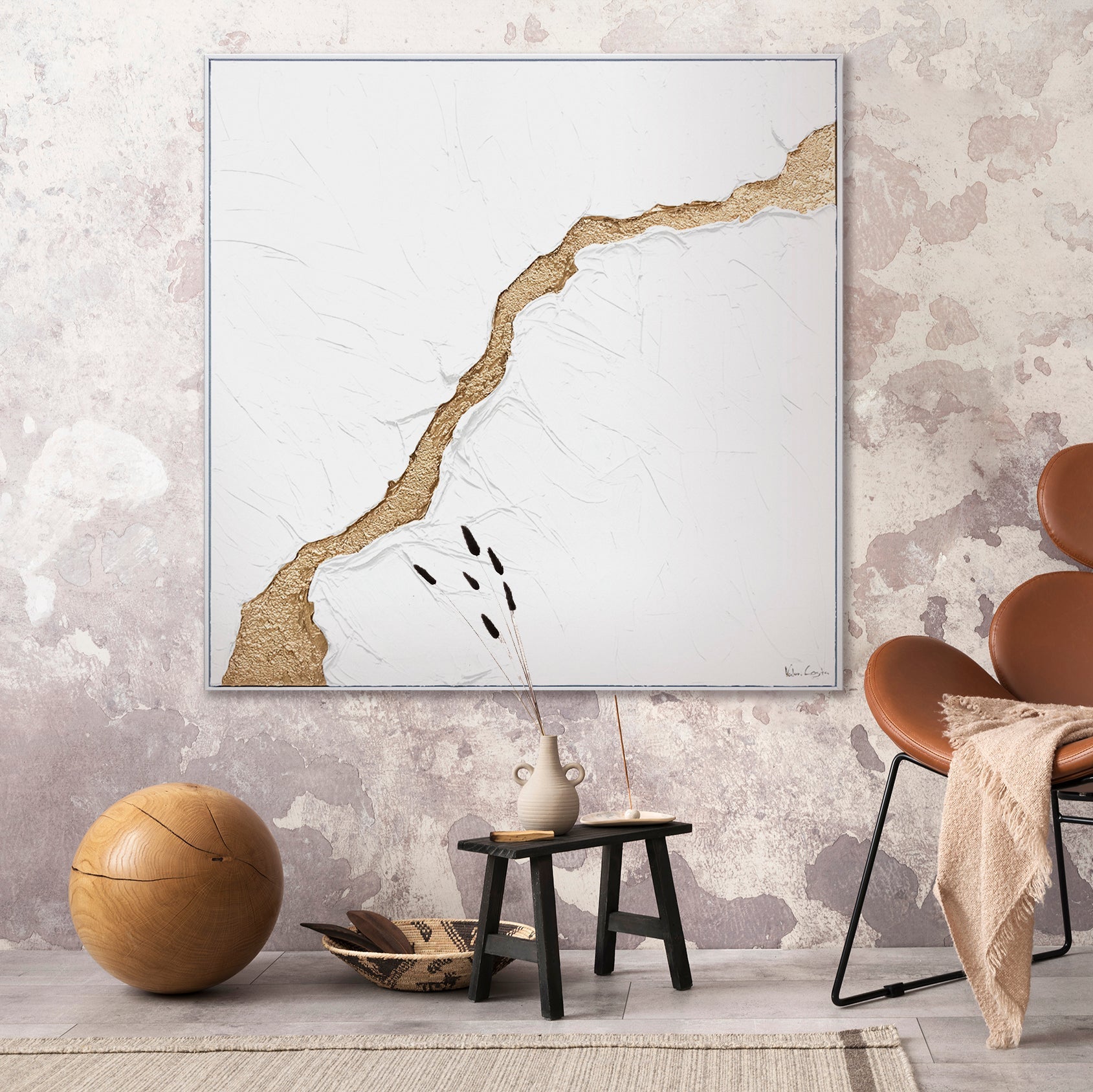 • Handgemaltes Acrylbild Gold Weiss minimalistische Wandkunst