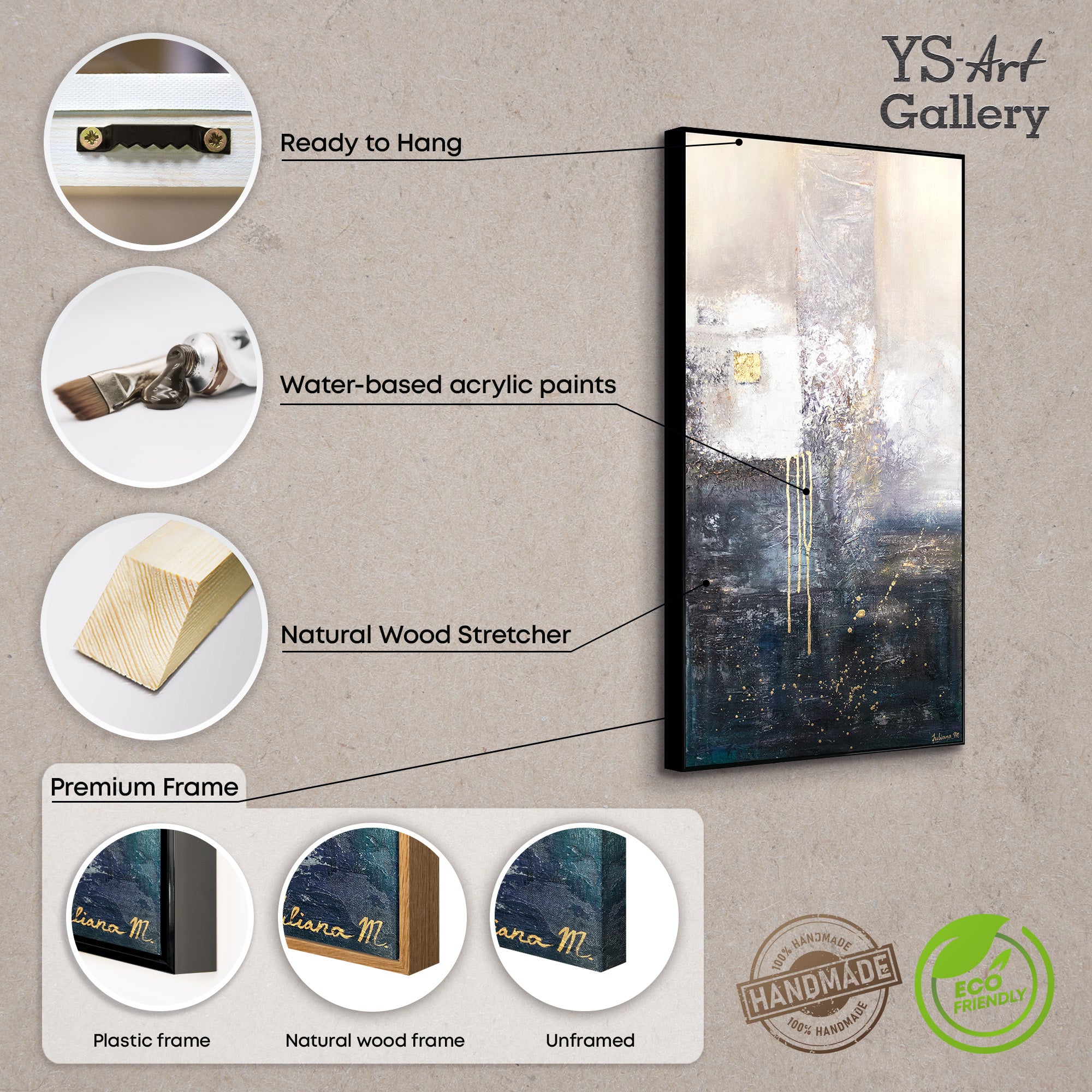 Ein vertikales Gemälde im Abstraktionsstil ist die perfekte Ergänzung für ein modernes Wohn- oder Bürointerieur. Ein angenehmes Farbschema wird in einem Raum im Loft-Stil, Minimalismus und anderen hochmodernen Designtrends gut aussehen.