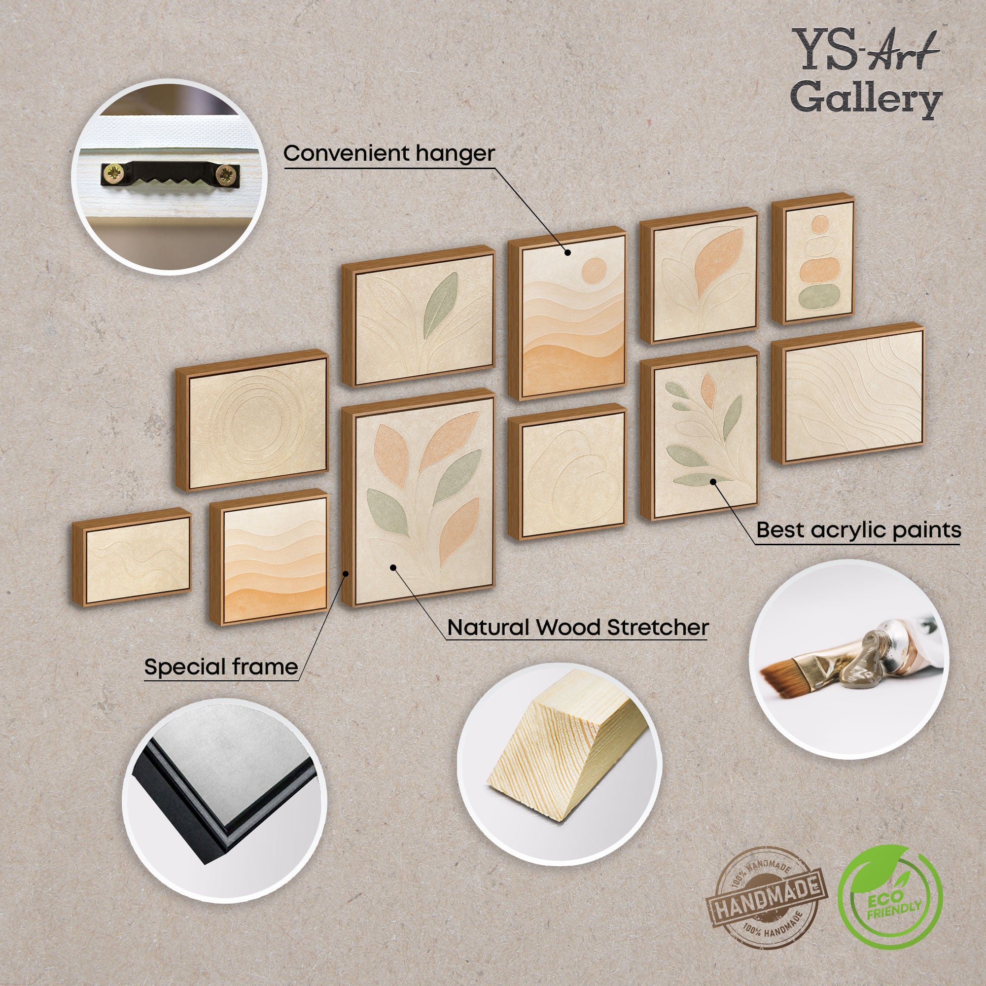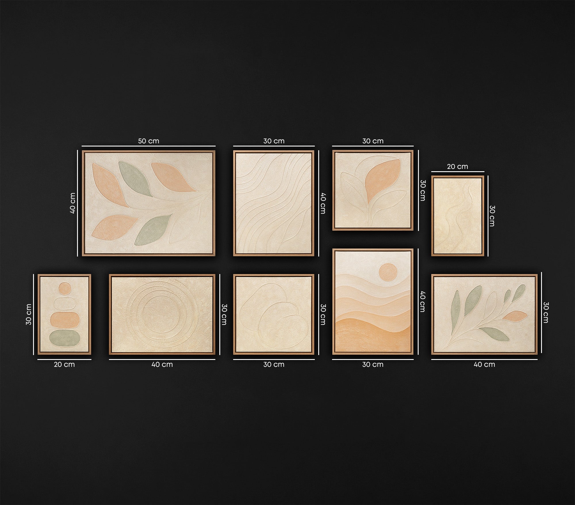 Die Serie umfasst vielfältige Motive – von stilisierten Blättern bis hin zu abstrakten Wellenformen. Wenn Sie diese exklusiven Leinwandbilder kaufen, erhalten Sie echte Unikate mit spürbarer Oberflächenstruktur. Jedes Acrylbild in Beige oder Weiß wird durch sanfte Naturtöne ergänzt, was die Serie zu einem Paradebeispiel für zeitgenössische Natur-Kunst macht. Die handgefertigte Qualität sorgt dafür, dass sich diese Werke deutlich von gewöhnlichen Kunstdrucken abheben.