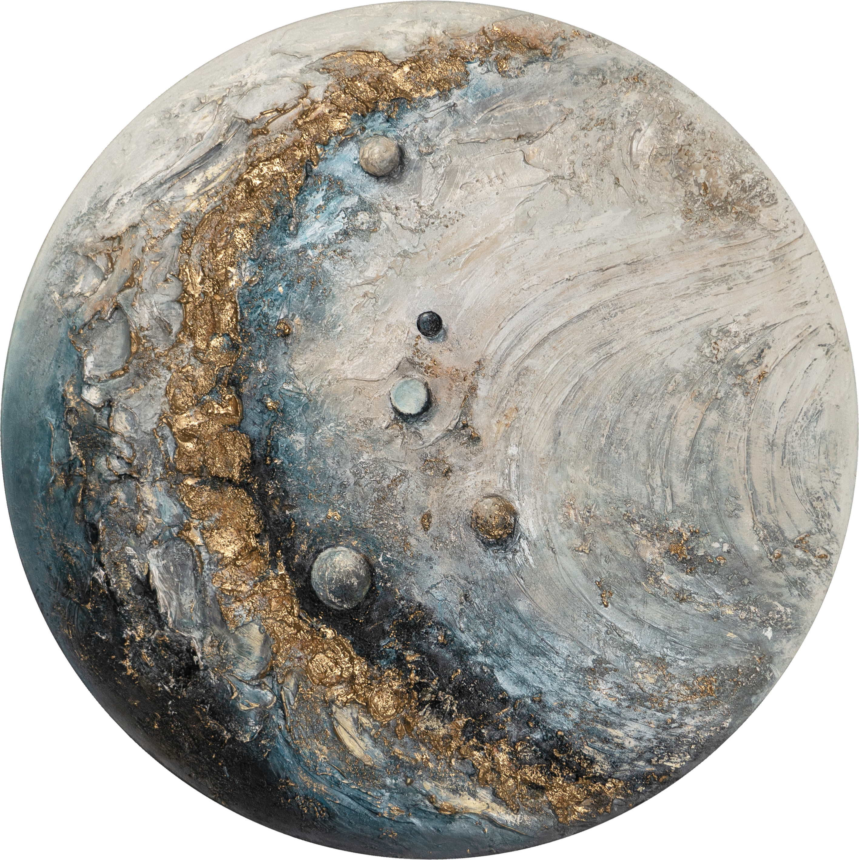 "Goldsphere" fuses luxury design with planetary inspiration in this hand-painted round canvas. Its glowing finish and textured gold, brown, and white tones create a striking presence, perfect for refined bedrooms, living rooms, or workspaces. A unique original for modern wall decor.