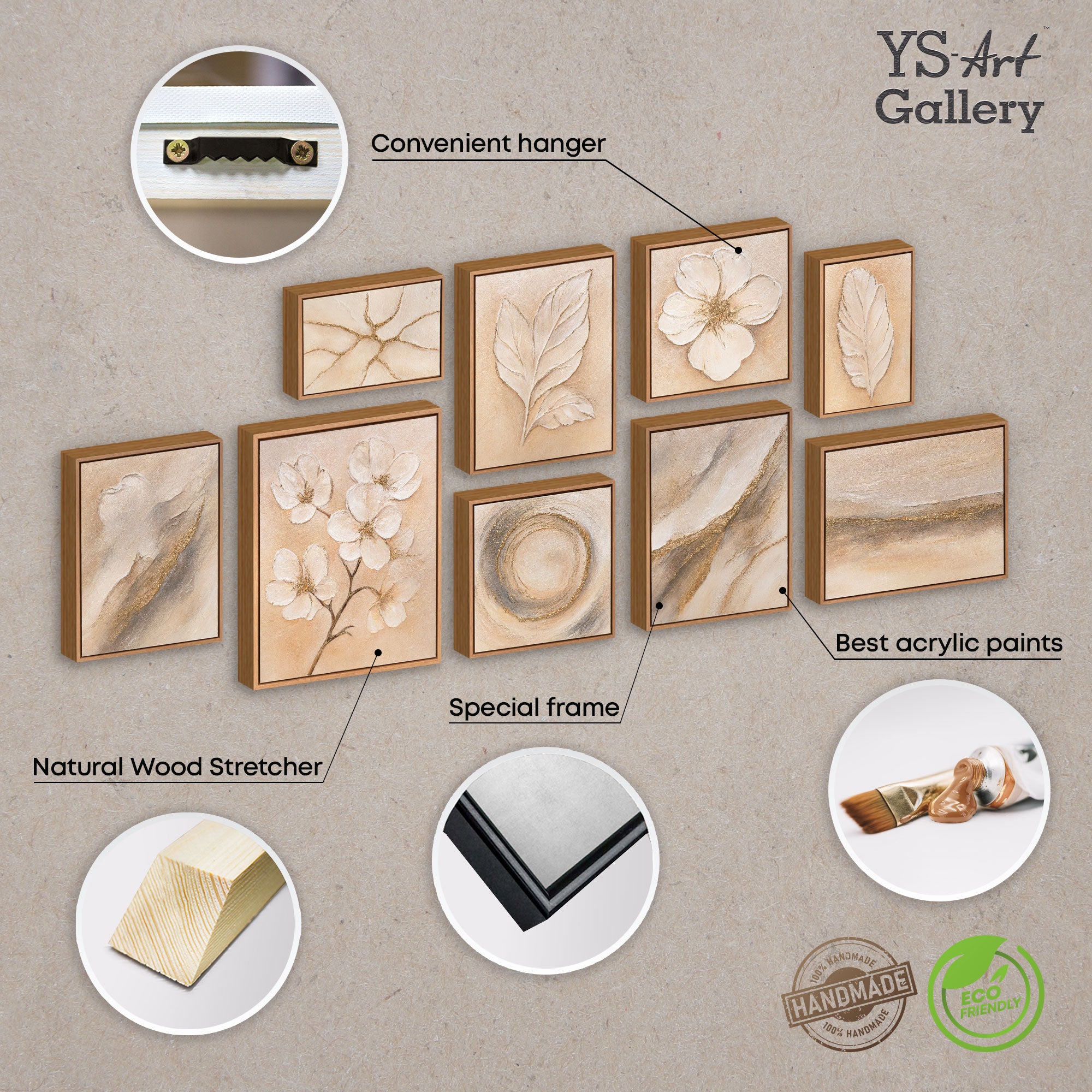 YS-ART steht für echte Handwerkskunst. Jedes Teil dieses Sets wird von erfahrenen Künstlern vollständig von Hand gemalt. Durch den Einsatz spezieller Spachteltechniken und hochwertiger Bilder mit Acrylfarben entsteht eine Tiefenwirkung und Brillanz, die nur bei originalen Kunstwerken möglich ist.