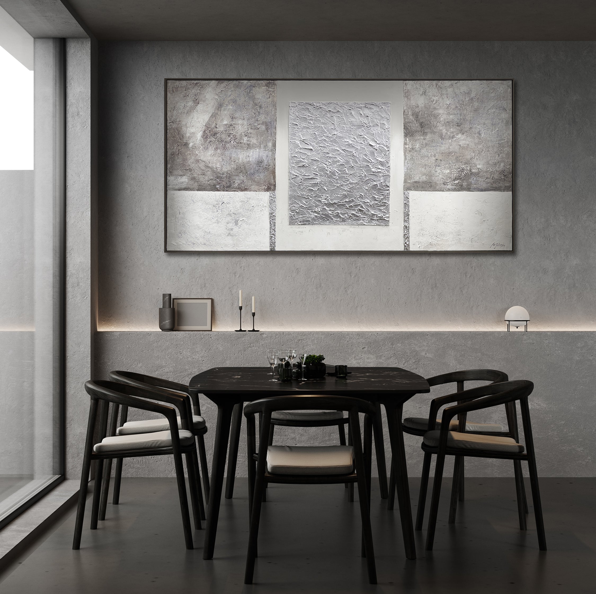• modernes Wandbild mit Struktur im minimalistischen Esszimmer
