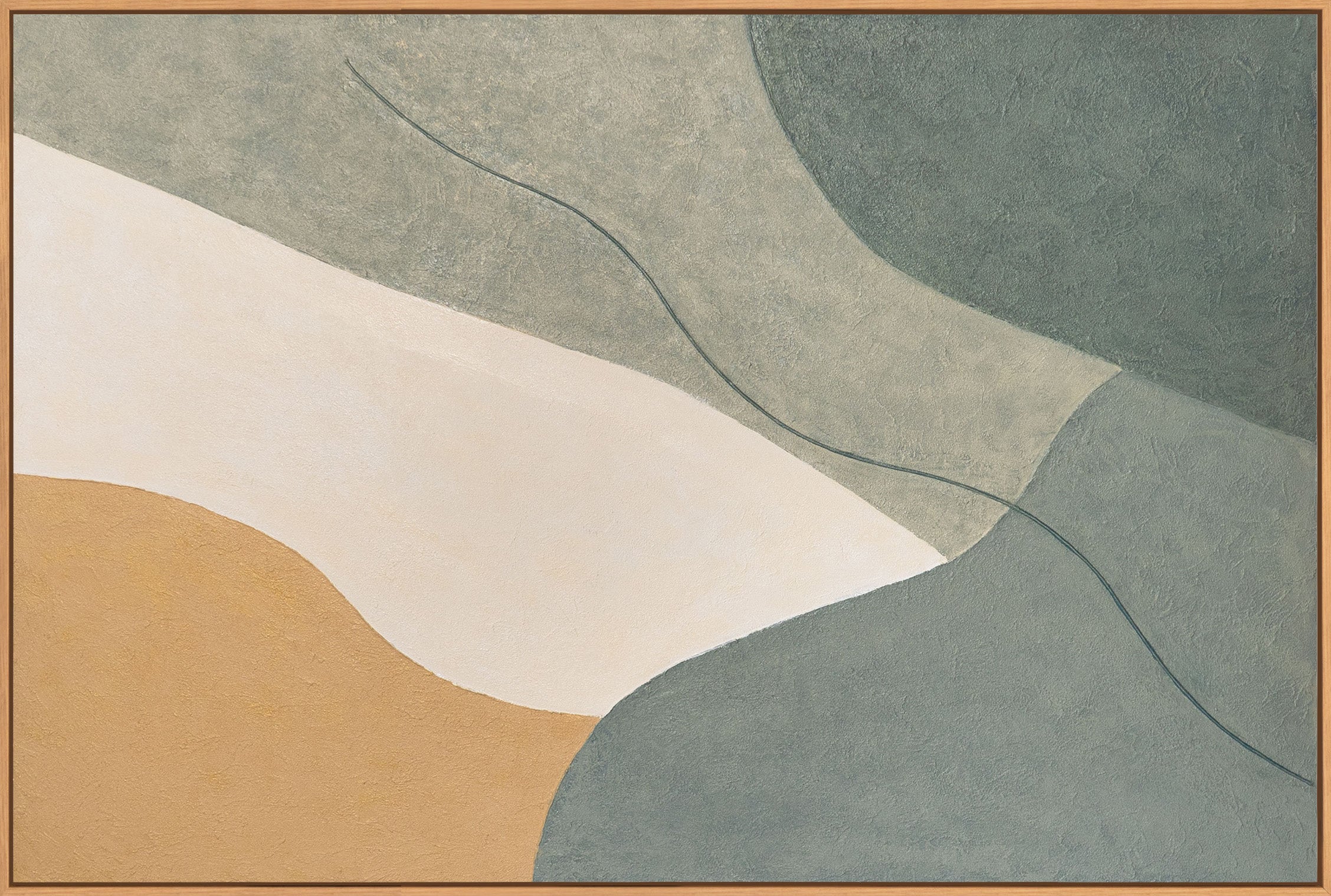 This hand-painted artwork is presented as contemporary wall decor in a frame and is suitable for a variety of interiors. Thanks to its minimalist color palette and balanced structure, this acrylic painting can be combined in many ways and seamlessly integrated into modern interior design concepts.