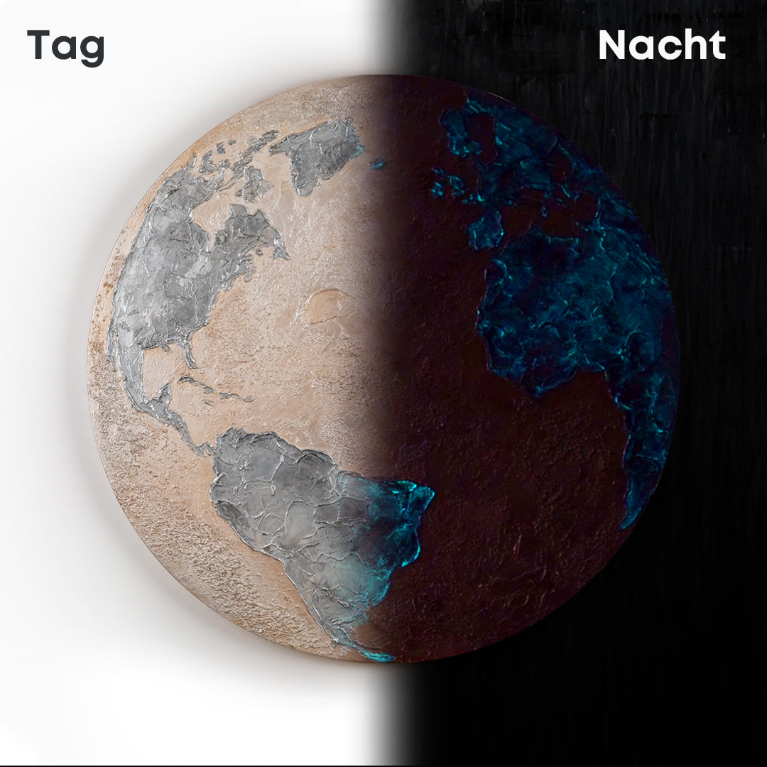 • Nachtlicht Acryl Gemälde in Planetform "Silberner Planet" Abstrakte Kunst