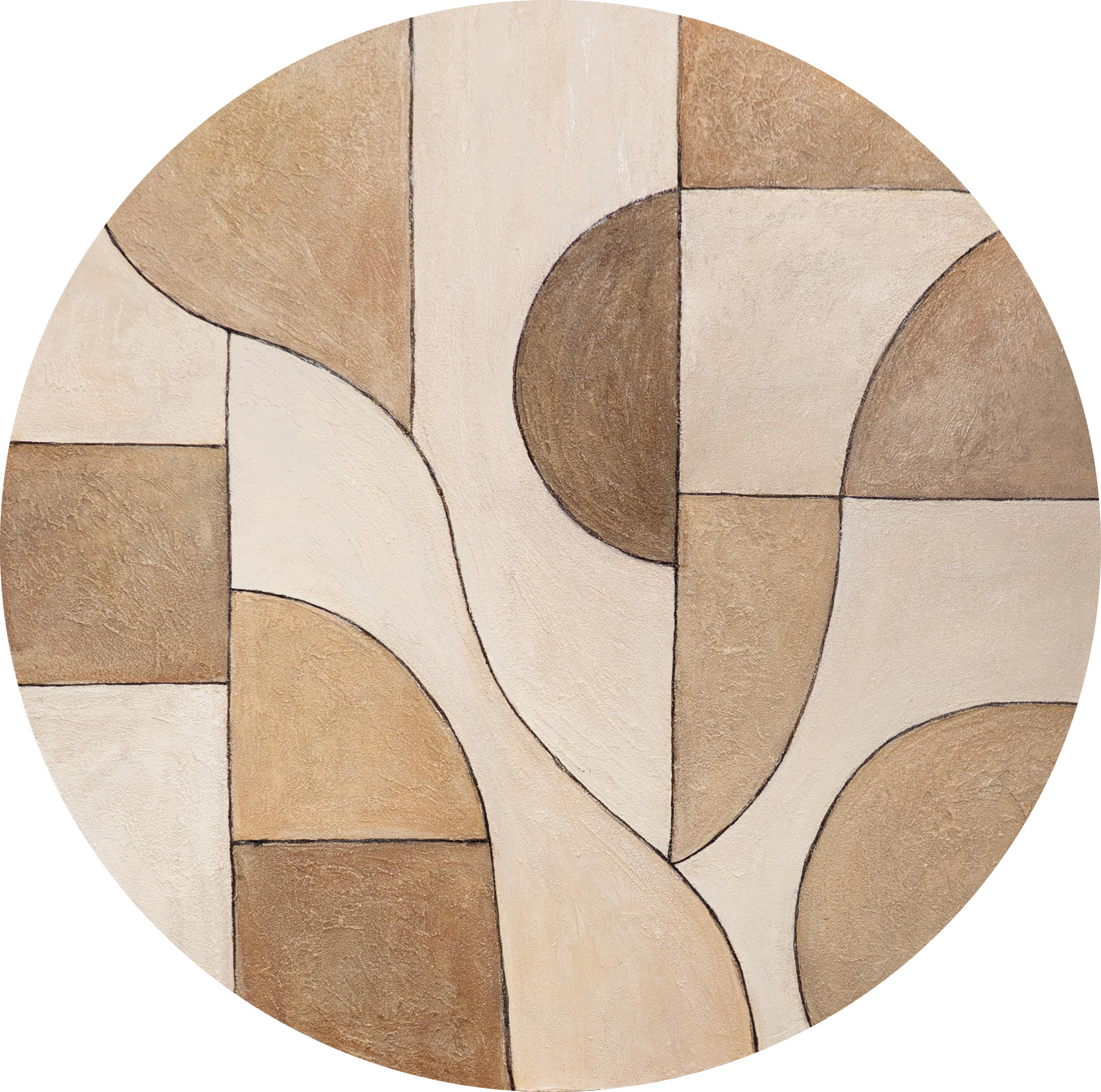 Runde Acrylbild „Ornamente der Zeit“ – Abstrakte Strukturkunst in Erdtönen
